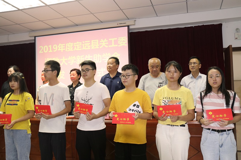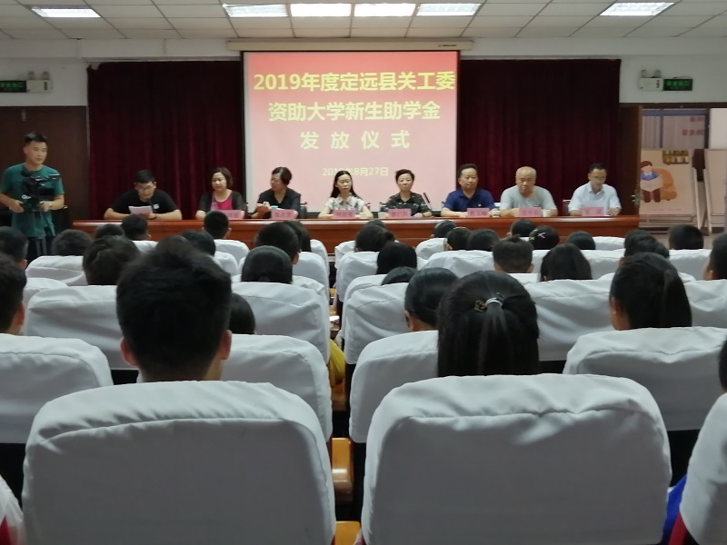 8月27日,定远县关工委举行2019年大学新生助学金发放仪式,现场向今年考取大学的107名贫困家庭学生发放助学金21.7万元。