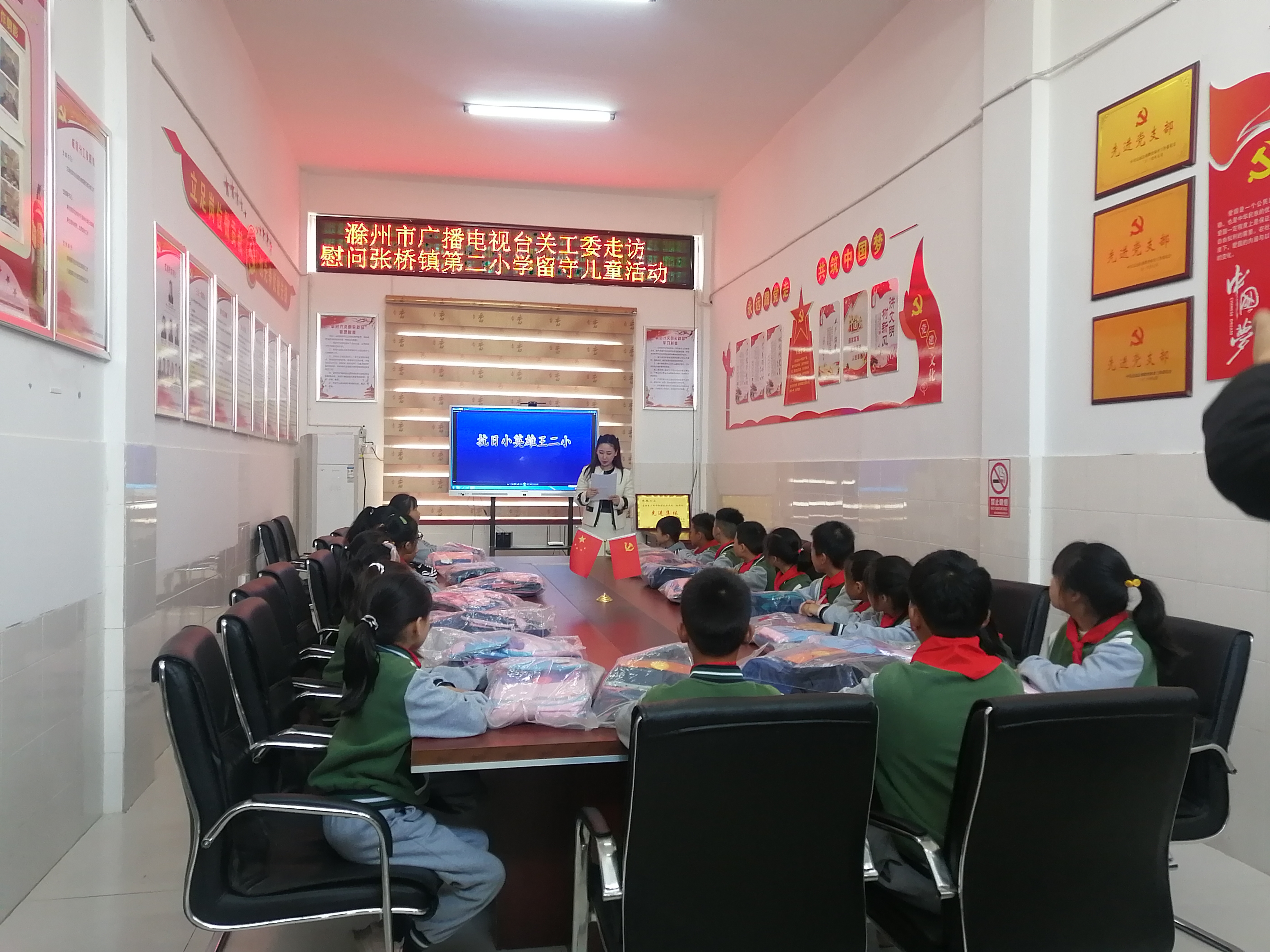 10月27日上午,市广播电视台关工委来到定远县张桥小学,对部分留守儿童进行慰问,不仅给他们送去了学习用品,还和他们进行知识问答互动,给他们讲红色革命故事,使孩子们懂得今天的幸福生活来之不易。收到良好的社会效果。