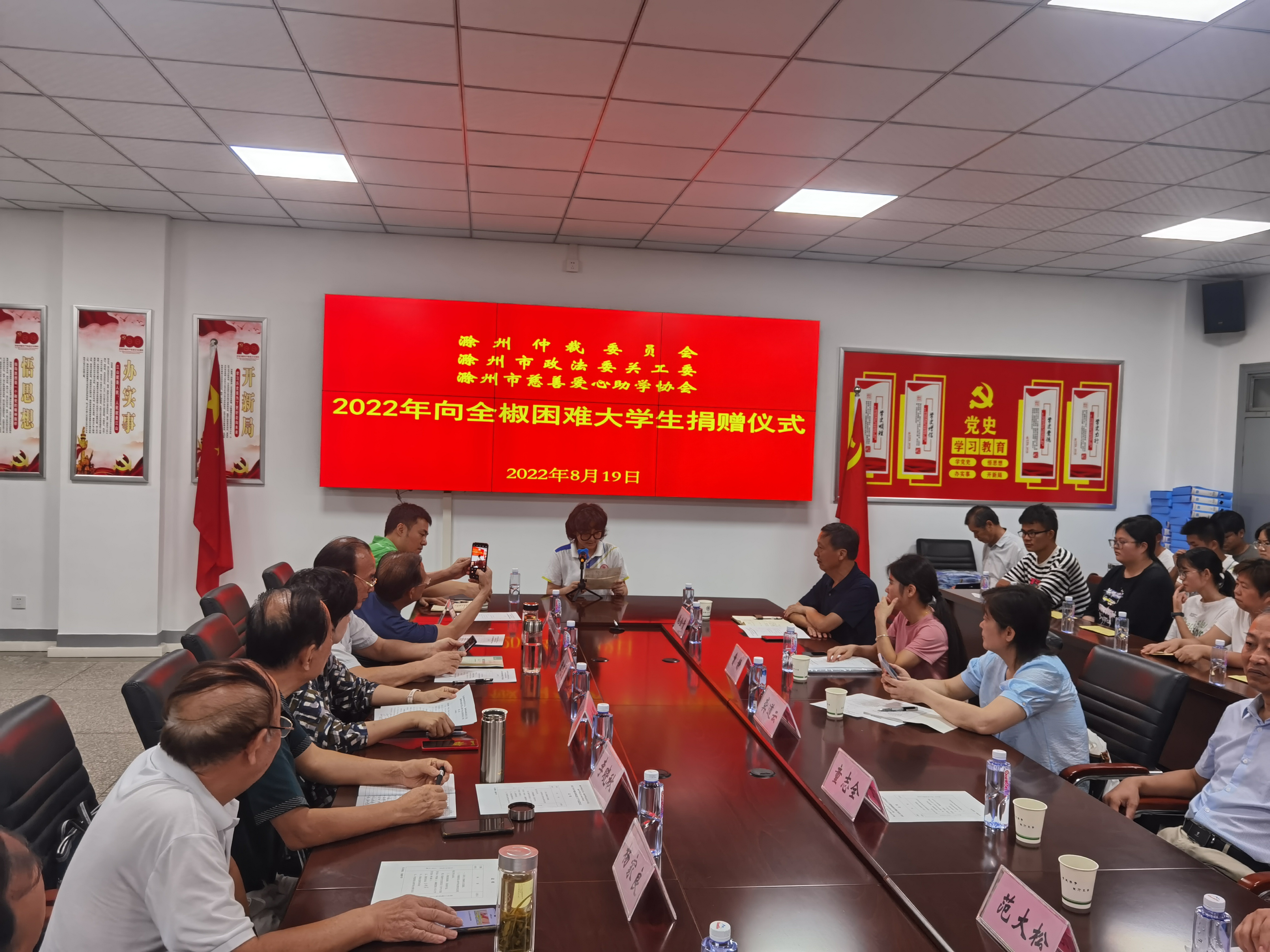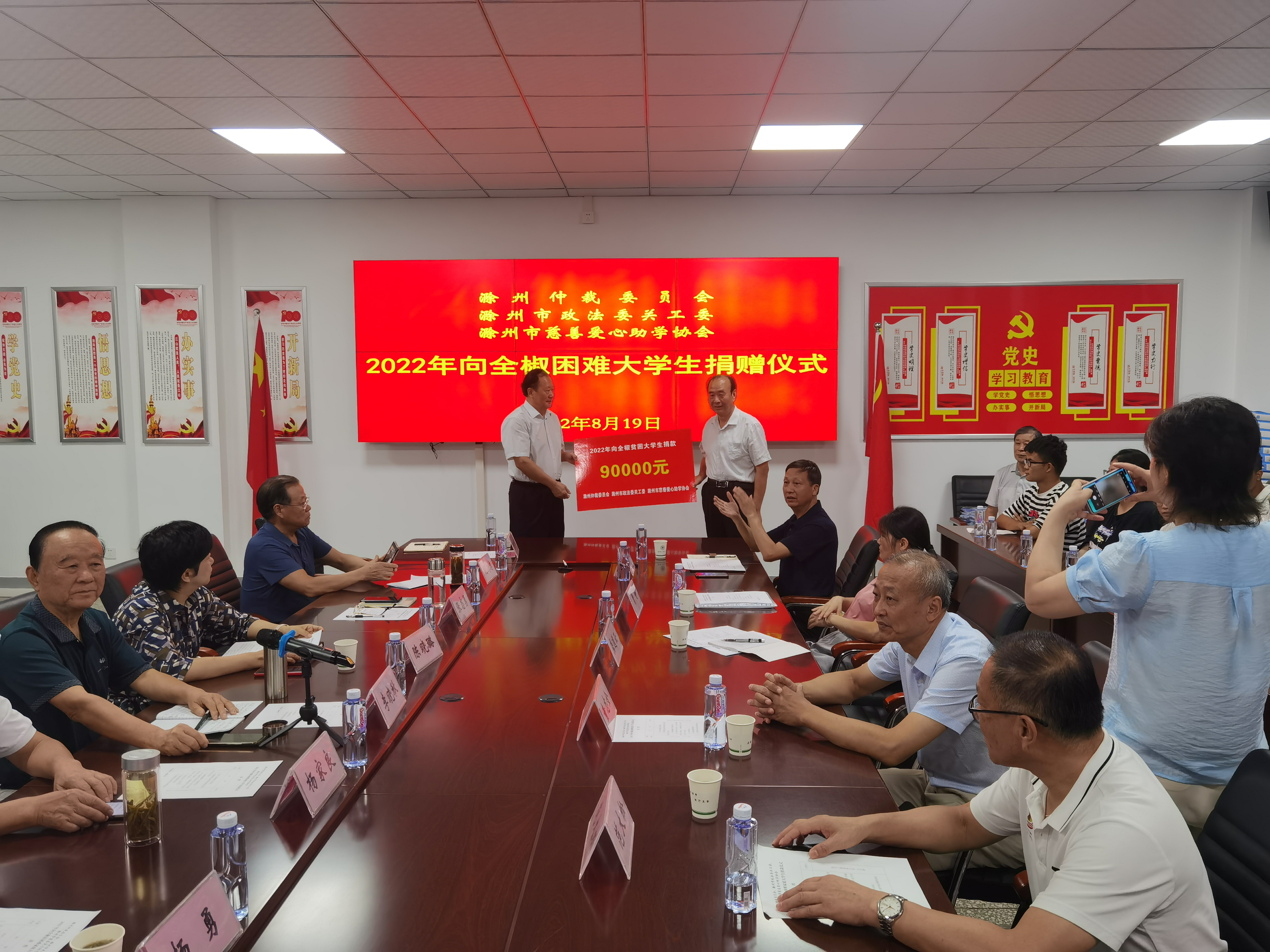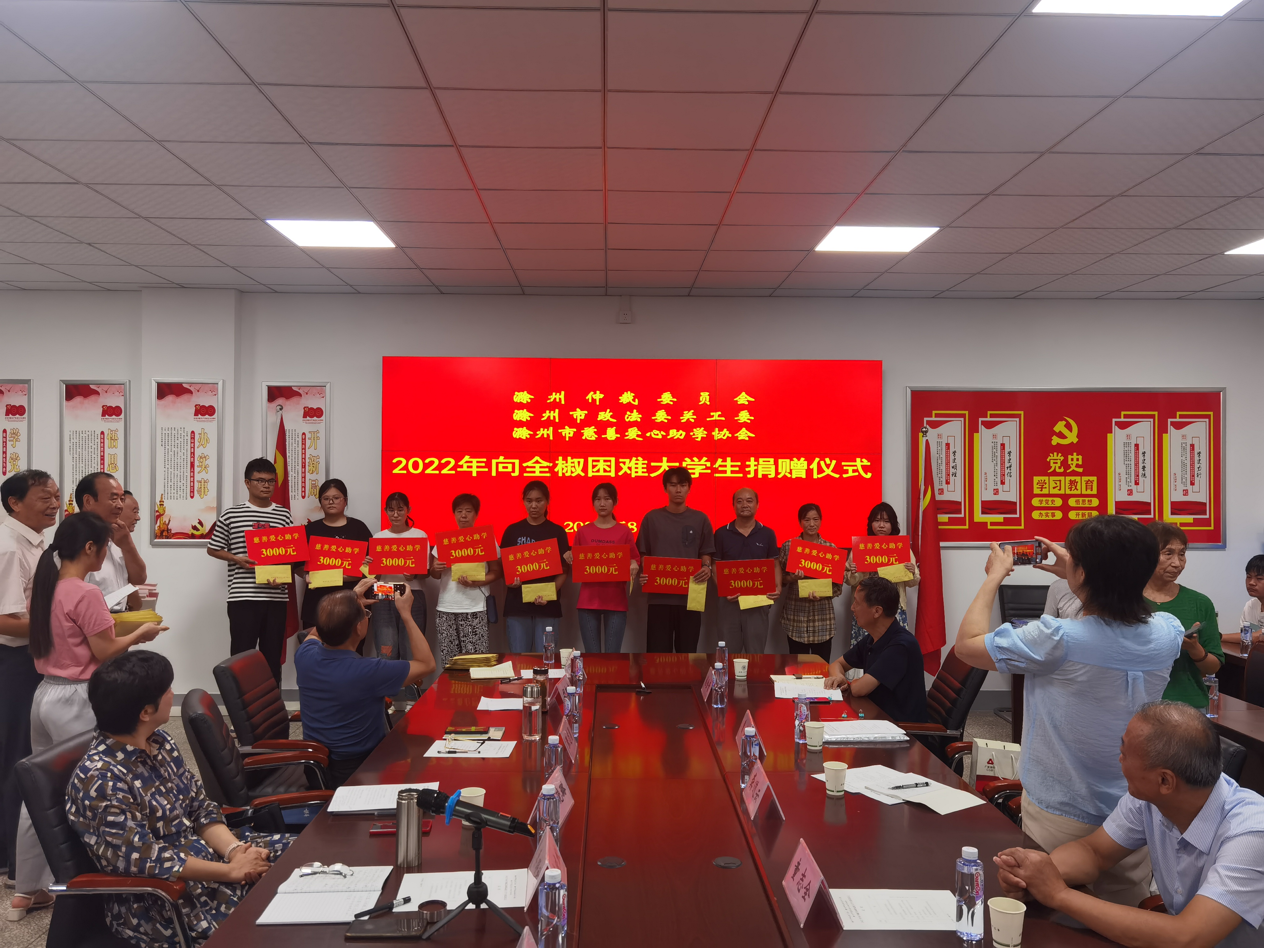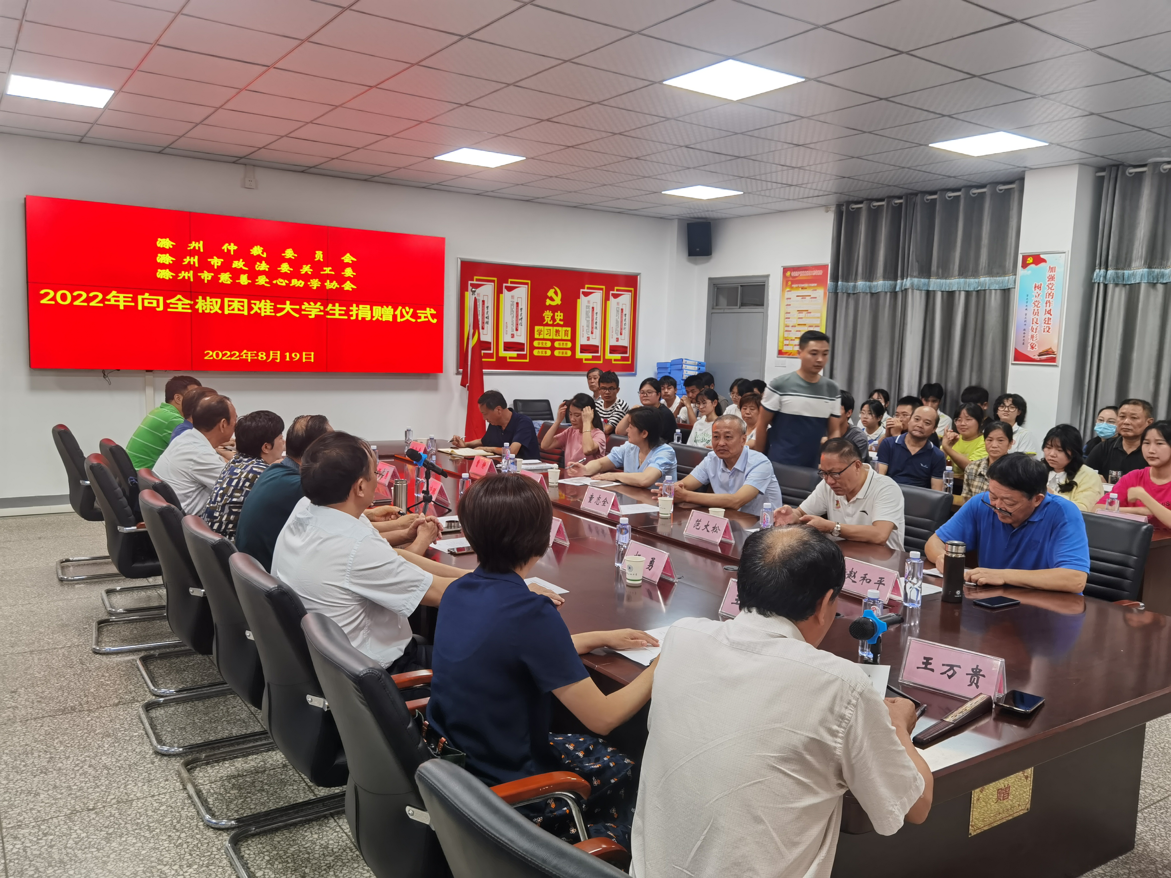 8月19日上午,滁州仲裁委员会、滁州市政法委关工委、滁州市慈善爱心助学协会2022年向全椒家庭困难大学生捐款发放仪式在全椒中学会议室举行。参加发放仪式的领导有:彩运网常务副主任、市慈善爱心助学协会创会会长李晓秋,滁州市财政局原局长、市慈善爱心助学协会创会副会长杨家良,滁州市政协原副秘书长、市慈善爱心助学协会常务副会长胡新忠,市委政法委关工委主任、滁州仲裁委员会专职副主任张志勇,市委政法委副书记、市委政法委关工委副主任王红丽,市委政法委机关党委专职副书记陈彬彬,滁州仲裁委员会秘书处综合科科长龚道云,滁州市慈善爱心助学协会常务理事曹静。全椒县委常委、副县长陈晓璐,县关工委主任杨勇、县教体局关工委主任范大松,全椒中学校长施金贵等领导参加。出席仪式的还有30名受资助困难学生或家长。