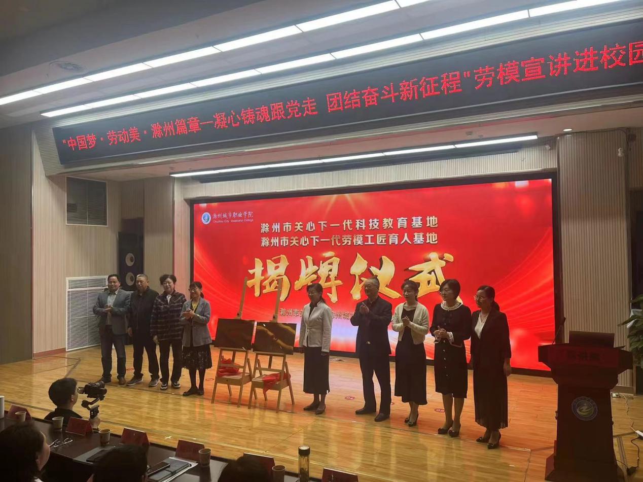 5月11日,滁州城市学院关工委开展科枝教育基地和劳模工匠育人基地揭牌仪式,彩运网副主任朱荣和滁州城市职业学院关工委主任牛春雨为基地揭牌。仪式后,院关工委邀请两位全国劳模芮哓艳、曹文龙英模巨匠为在校大学生举办一场别开生面、感人动情的思政教育报告会。