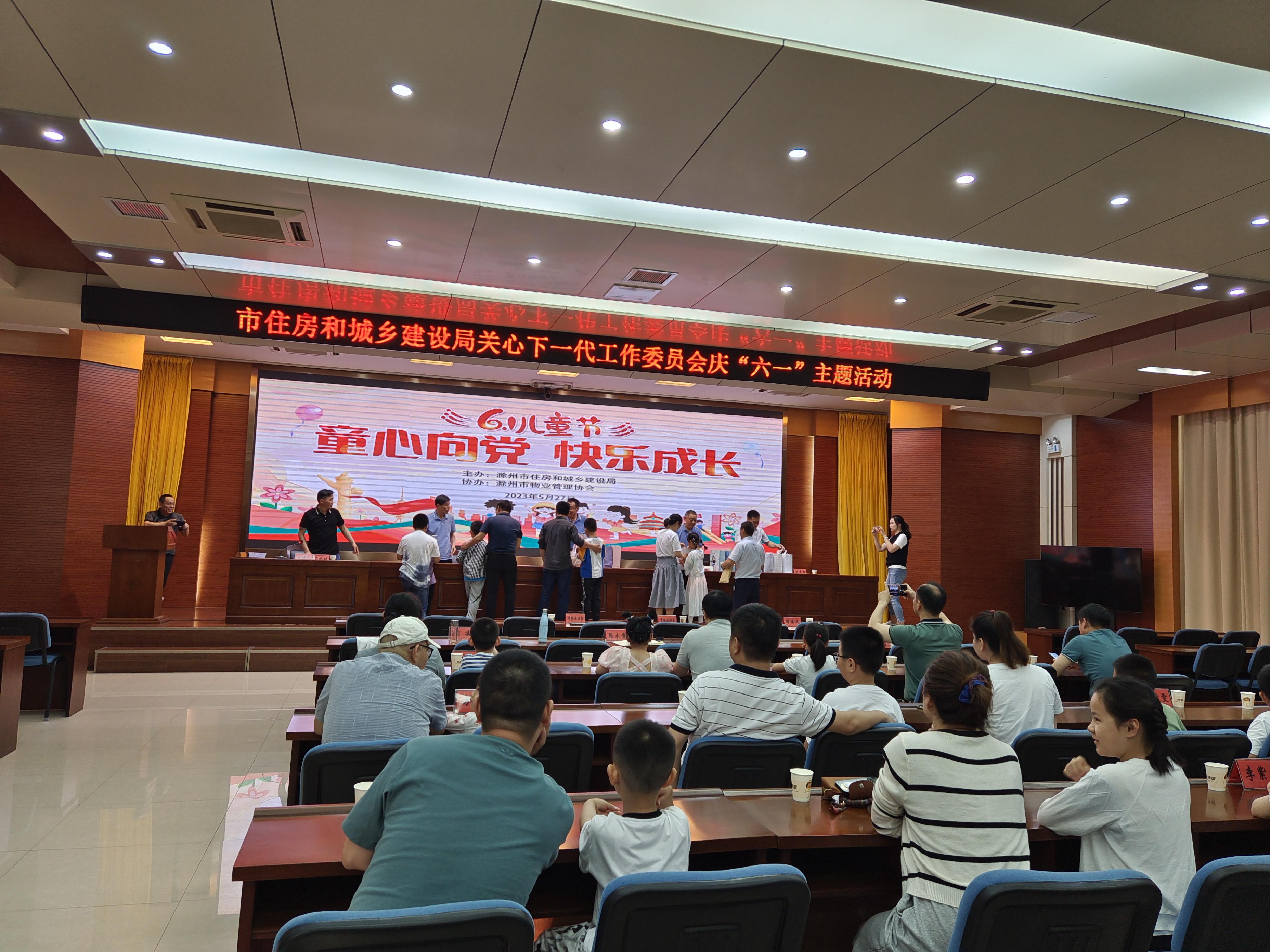 为积极践行党的二十大精神,把关心下一代工作做实做细,市住建局关心下一代工作委员会于2023年5月27日在市住建局附属二楼会议室开展“童心向党快乐成长”庆“六一”活动。本次活动由市住建局主办,滁州物业管理协会协办。