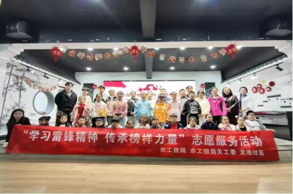 为更好传承雷锋精神,践行社会主义核心价值观,弘扬“奉献、友爱、互助、进步”的志愿服务精神,让孩子们从小就了解雷锋事迹,将雷锋精神付诸实践,引导孩子从身边小事做起、从点滴做起,养成助人为乐的好品质,3月23日上午,市工信局关工委联合龙池社区开展“学习雷锋精神传承榜样力量”志愿服务活动,30多名社区小朋友积极主动参加了活动。