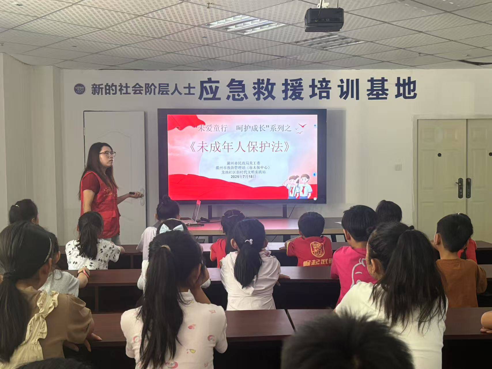 针对暑假天气炎热,孩子在家独处时间长、管控难度大的情况,为让小朋友们度过一个安全、愉快充实的假期。邀请专业社工机构,一同深入部分社区(村居),组织未成年人开展《未成年人保护法》、《预防未成年人犯罪法》、《未成年人网络保护条例》、防溺水宣传教育活动。首场活动当日在龙池社区开启,社工志愿者老师通过短视频和图片向同学们诠释“两法一条例”重点内容,讲演防溺水的避险举措。并开展有奖互动问答,激发大家的参与兴致,现场互动氛围热烈。对培养未成年人学法、知法、用法自我保护安全意识,促进健康快乐成长具有良好的引导作用,受到社区、家长、同学们的欢迎。