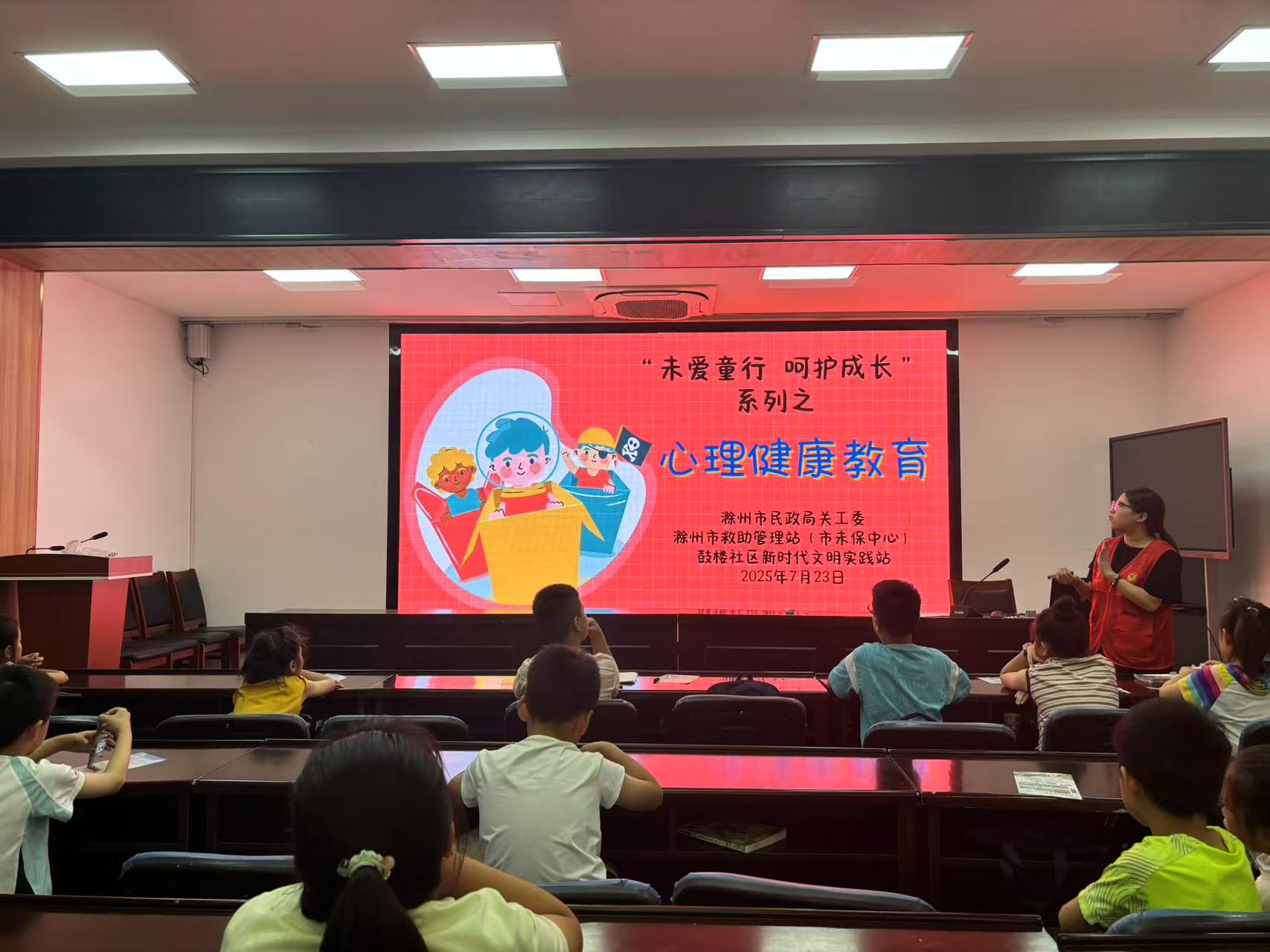 7月23日,滁州市民政局关工委,会同市未保中心(市救助站)暑假季法制教育系列活动之二。到鼓楼社区举行安全上网指南、心理健康知识讲座,引导未成年人筑牢健康成长安全防线。