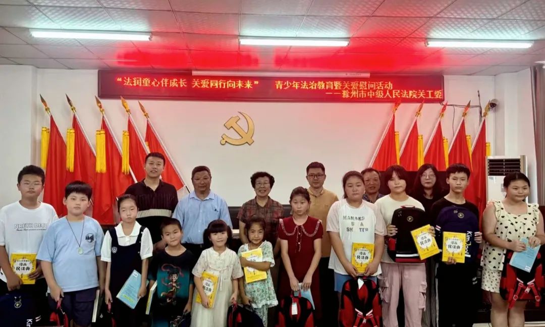 为进一步加强未成年人法治宣传教育,呵护青少年健康成长,8月20日下午,滁州市中级人民法院关心下一代工作委员会前往定点帮扶村明光市桥头镇汉塘村,开展“法润童心伴成长 关爱同行向未来”——青少年法治教育暨关爱慰问活动。滁州中院关工委主任施芝华、副主任张广斌,院党组成员、政治部主任张凯参加活动。