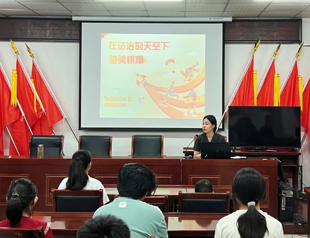 随后,市中院研究室干警尹烁平围绕“什么是‘法’”“什么是‘法律’”和“如何用法律保护自己”三个话题,为孩子们带来了一场题为《在法治的天空下驰骋翱翔》的普法知识讲座。尹烁平以深受小朋友们喜爱的动画电影《哪吒2》中的哪吒、敖丙、太乙真人等角色入题,用通俗易懂的语言、幽默风趣的互动,将抽象的法律条文转化为鲜活的案例故事,激发了孩子们浓厚的学法兴趣。讲座现场还设置了法治知识有奖竞答环节,孩子们踊跃举手、积极抢答。