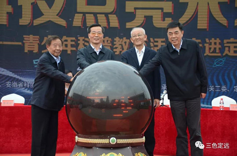 韩军、张俊、汪建中、陈履祥共同启动水晶球,标志活动正式开始。启动仪式后,韩军、张俊一行参观了科普展品展览,和众多中小学生一起近距离参观科技展品,现场感受科技的无限魅力。