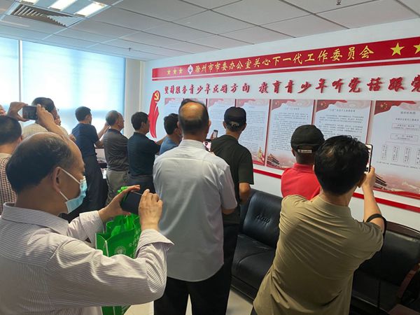 会议现场考察市委办、市委宣传部、市政协办三家单位关工委建设情况。听取关工委主任介绍该单位组织建设及活动安排情况。随后召开会议,市委办关工委、市中院关工委、市农业农村局关工委、市审计局关工委、市中西医结合医院关工委五家单位负责人进行交流发言。