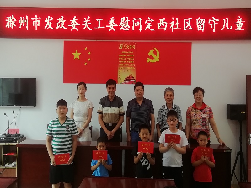 7月30日上午,市发展改革委关工委主任徐洪喜一行5人,到定远县定城镇定西社区看望慰问留守儿童。