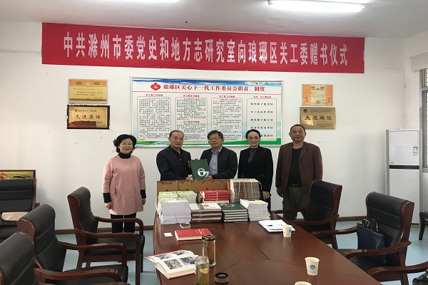 滁州市委党史和地方志研究室向琅琊区关工委捐赠《中共滁州党史历史》、《滁州市志》、《滁州大事记》、《滁州农业大包干》、《皖东人物》、《滁州年鉴》(2020)等书籍100余册。