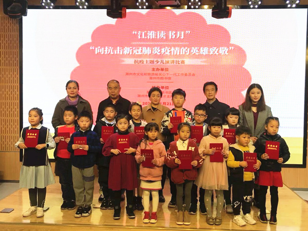 11月21日,由滁州市文化和旅游局关心下一代工作委员会、市图书馆主办,金话筒口才主持学校、慧泉书店协办的“向抗击新冠肺炎疫情的英雄致敬”主题少儿演讲比赛在市图书馆多功能厅举行,共有14组家庭参与其中。