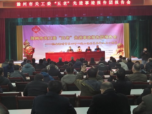 报告会现场,南谯区腰铺镇关工委主任张道传、沙河镇关工委主任戴金权、来安县新安镇关工委主任刘景兰、明光市张八岭镇关工委常务副主任谭学富和天长市新街镇关工委主任王世泽,五位“五老”分别讲述了在关心下一代工作中的感人故事。