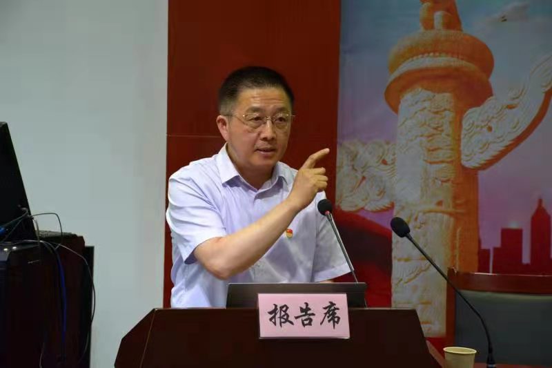 6月22日下午,彩运网“举旗帜•跟党走”报告团一行6人在团长李孙强带领下,冒着酷暑,前来天长市实验中学为近200名师生作了专题报告。报告会由天长彩运网副主任汤长玉主持。