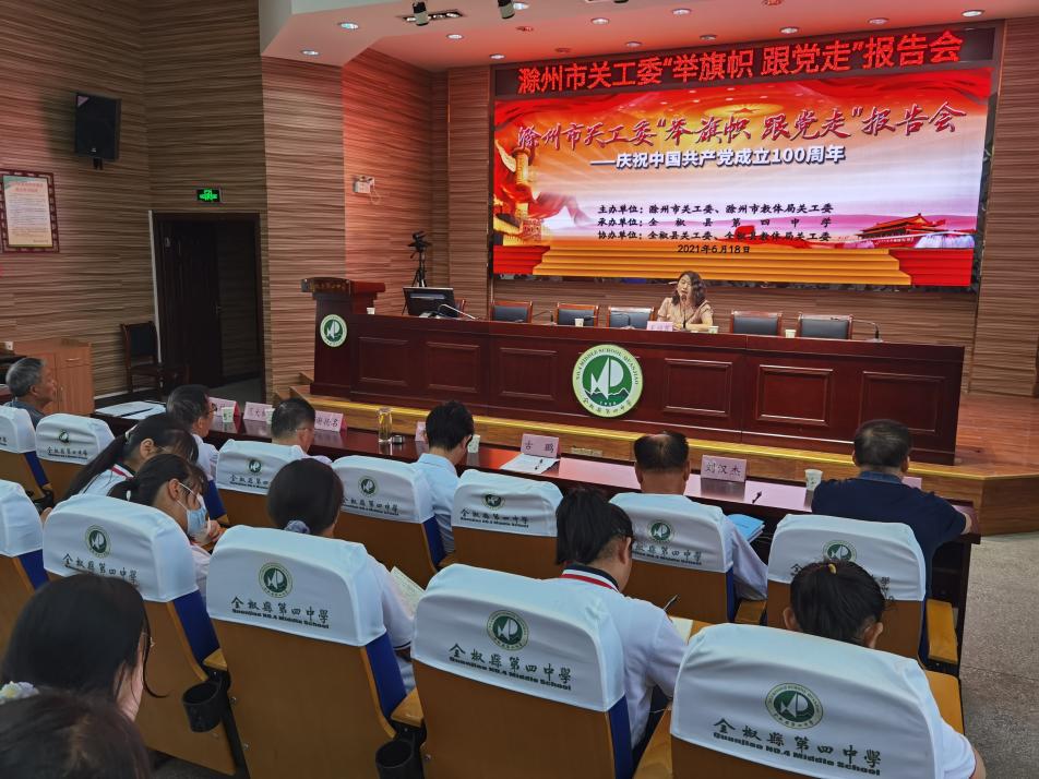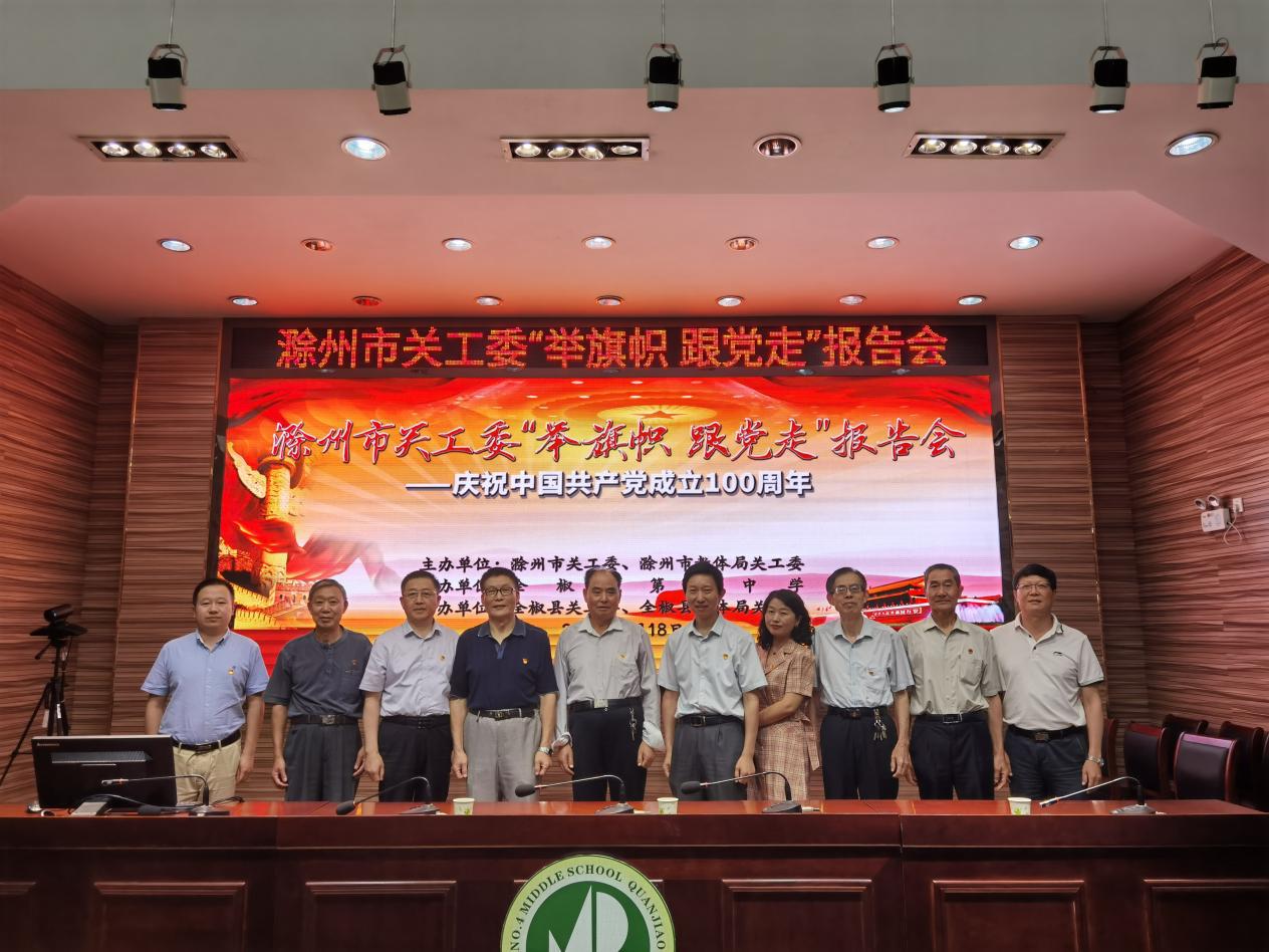6月18日上午,彩运网“举旗帜跟党走”五老报告团一行6人,在团长李孙强带领下,到全椒县第四中学作首场巡回宣讲报告。全椒县关工委副主任鲁传海以及办公室人员、县教育局关工委负责人,县第四中学200多名师生到会聆听了报告。