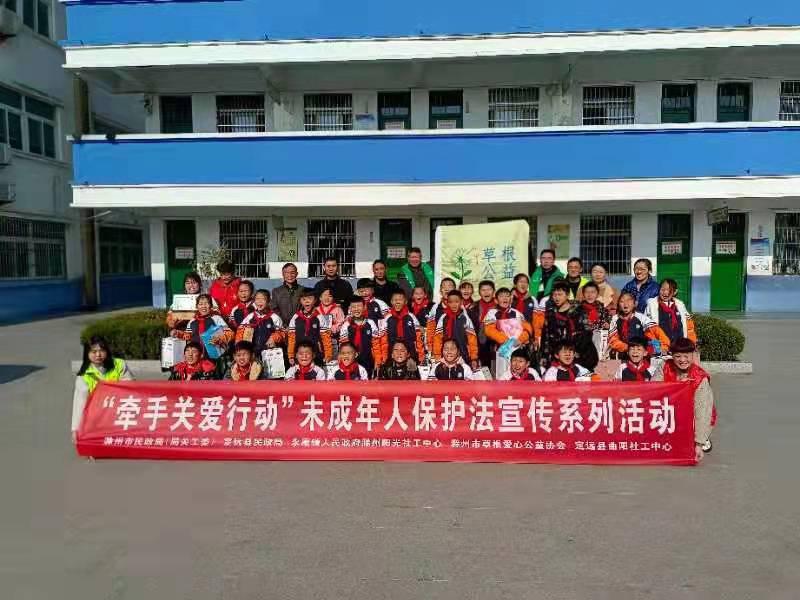12月5日,滁州市民政局关工委、定远县民政局关工委、定远永康镇政府、市阳光社工中心、市草根爱心公益协会、定远曲阳社工中心等到定远县永康镇小学,开展“牵手留守儿童,关爱助力健康成长”活动。一是未成年人保护法宣讲,教育引导小学生及家长学习、了解、遵守儿保法,保护未成年人权益;二是心理学愿志老师带领小学生做《让我们和情绪做个朋友吧》和安全保护互动游戏,寓教于乐引导小朋友保持乐观向上的学习情绪,注意防孤独、防寒、防冻、防煤气中毒、防骗、防交通事故等;三是为30名困境小学生发放学习用品和运动鞋袜。