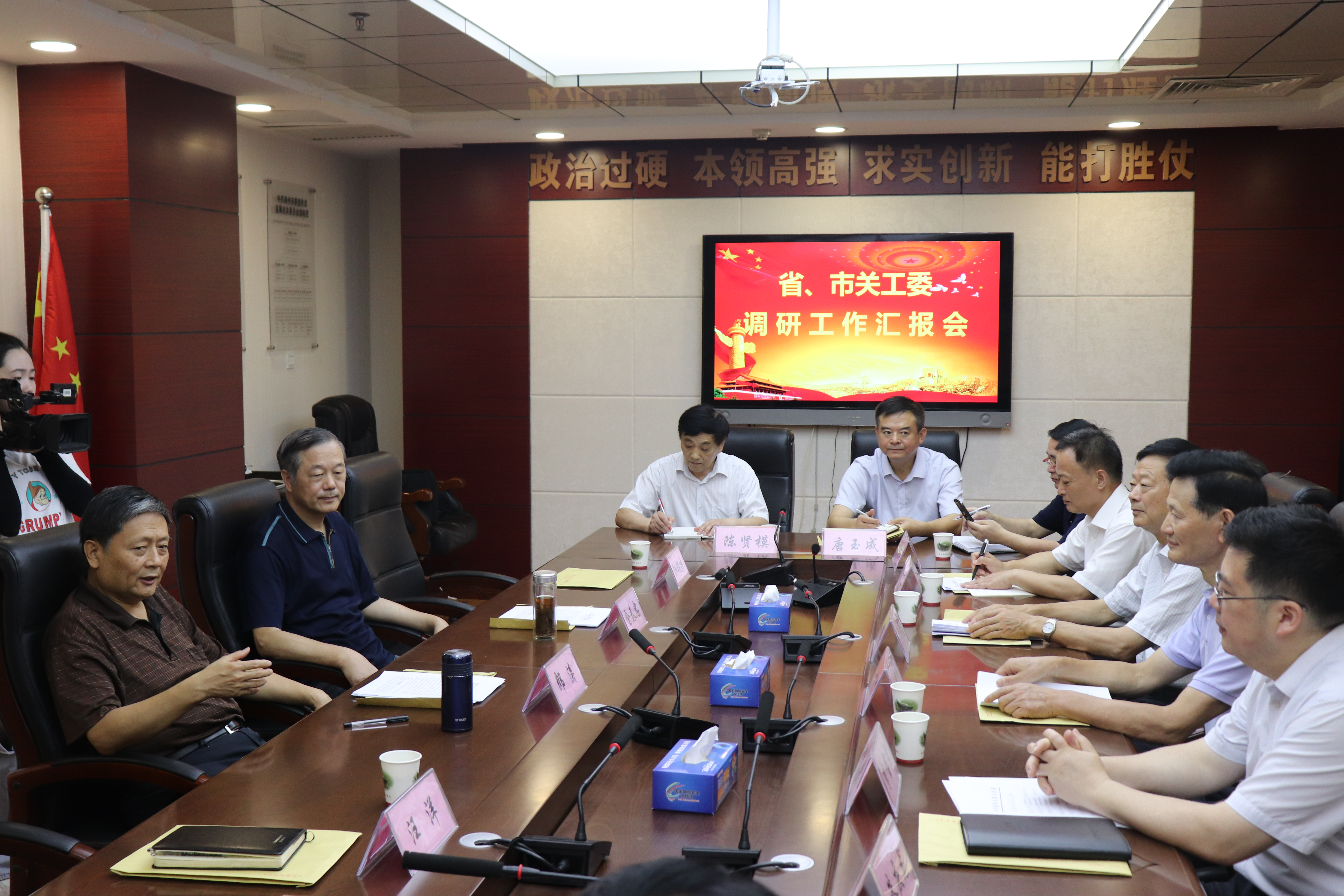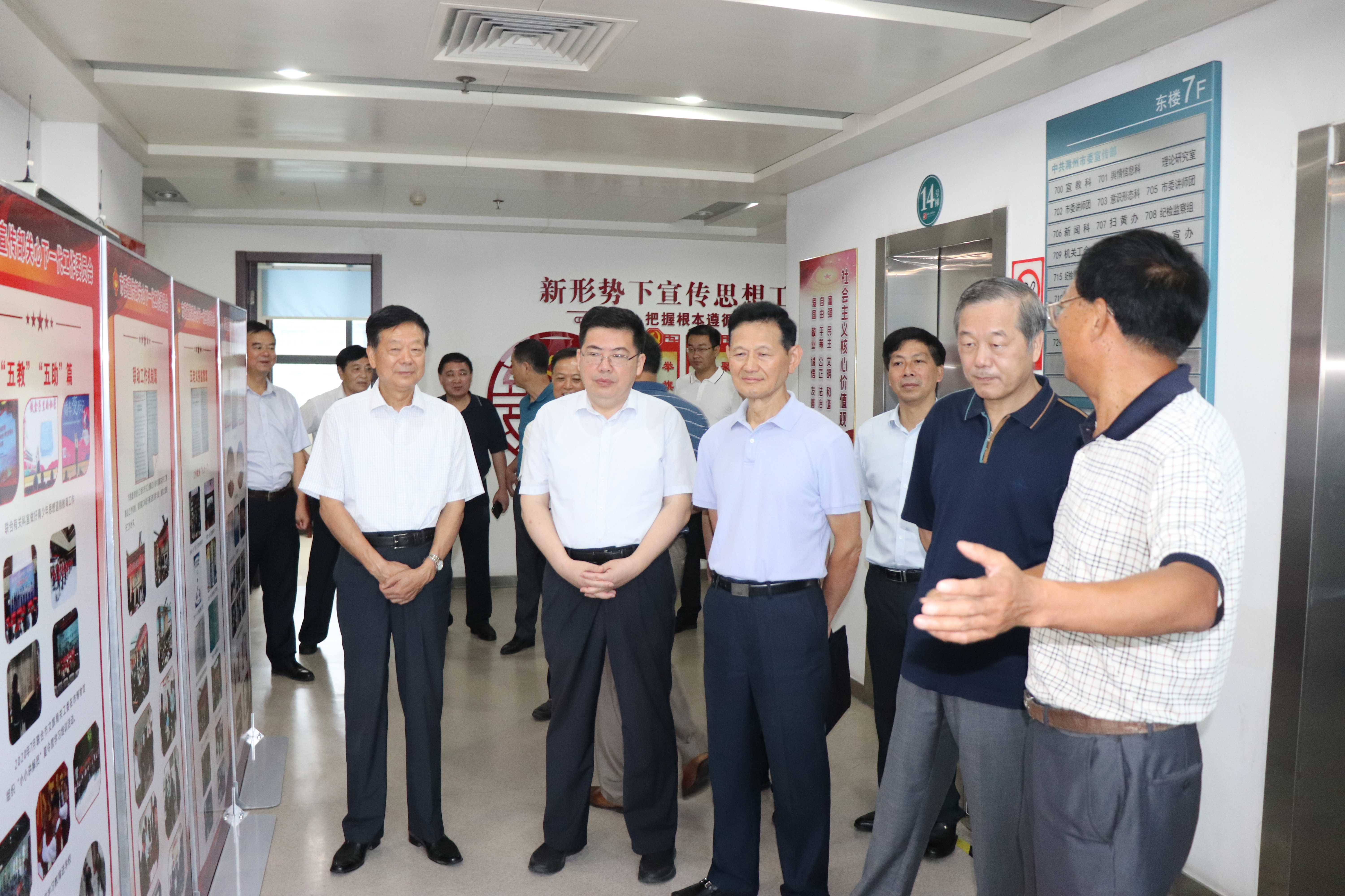 2021年7月8日上午,省关工委常务副主任郎涛、金春忠在彩运网主任李耀才、常务副主任傅厚华、副主任朱庆龙陪同下,莅临市委宣传部关工委调研指导工作。市委常委、宣传部长李宝君全程参加并亲自向调研组介绍部部关工委工作情况。市委宣传部常务副部长、部关工委名誉主任周全教出席调研活动并参加汇报会。