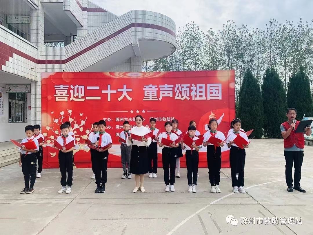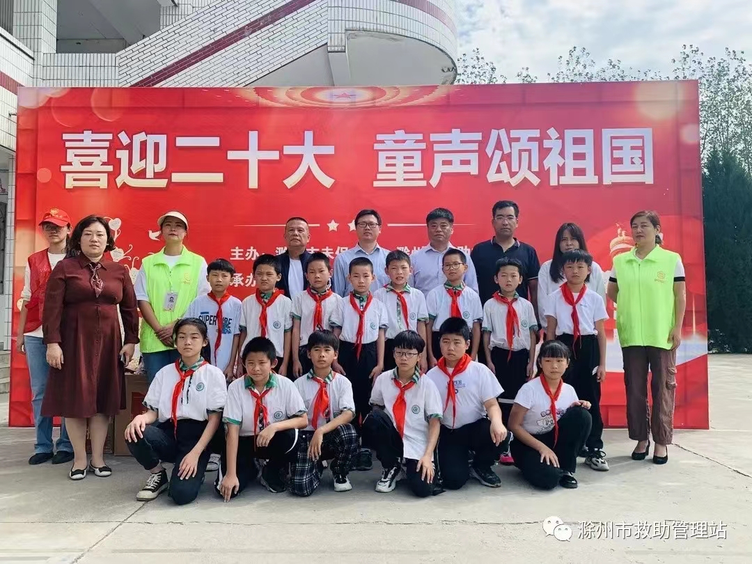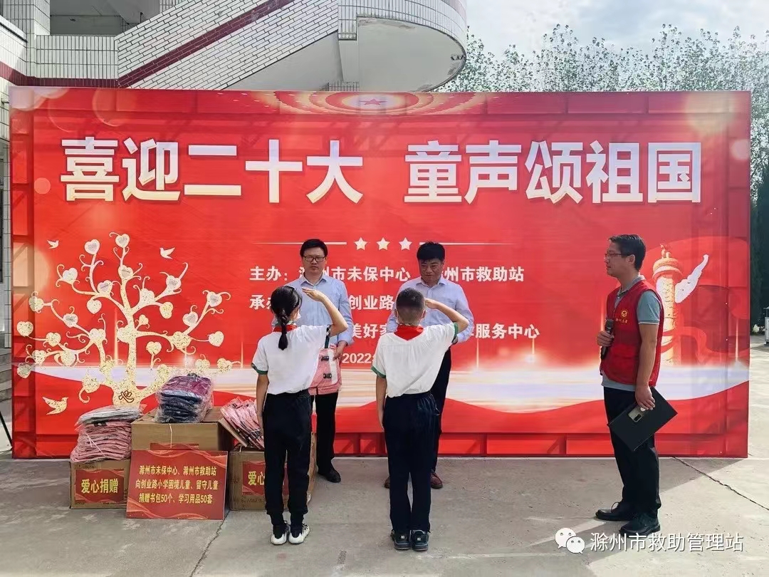 为培养未成年人爱国情怀,9月21日上午,在国庆 节将临之际,市民政局党组副书记、副局长王中前带领局关工委、救助站(市未保中心)到创业路小学开展“喜迎二十大 童声颂祖国”迎国庆主题活动。通过红歌唱祖国、诗歌颂祖国、向国旗敬礼、为困境儿童和留守儿童(50名)赠送学习用品等系列活动,在孩子们心中深深地播下了爱国爱党的种子,让他们感受到各级党委政府与社会各界的关爱,为党的二十大胜利召开营造了良好的校园氛围。