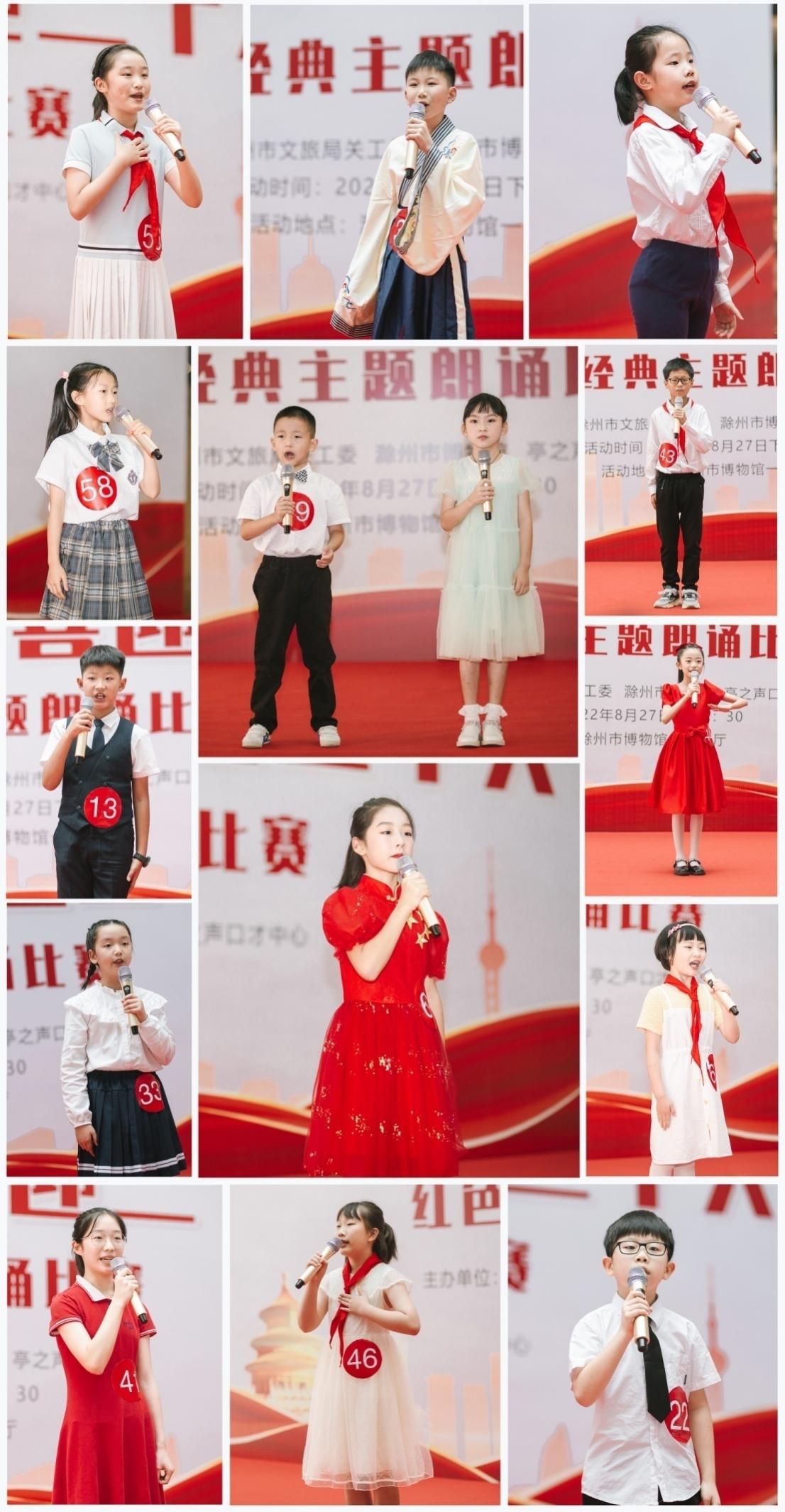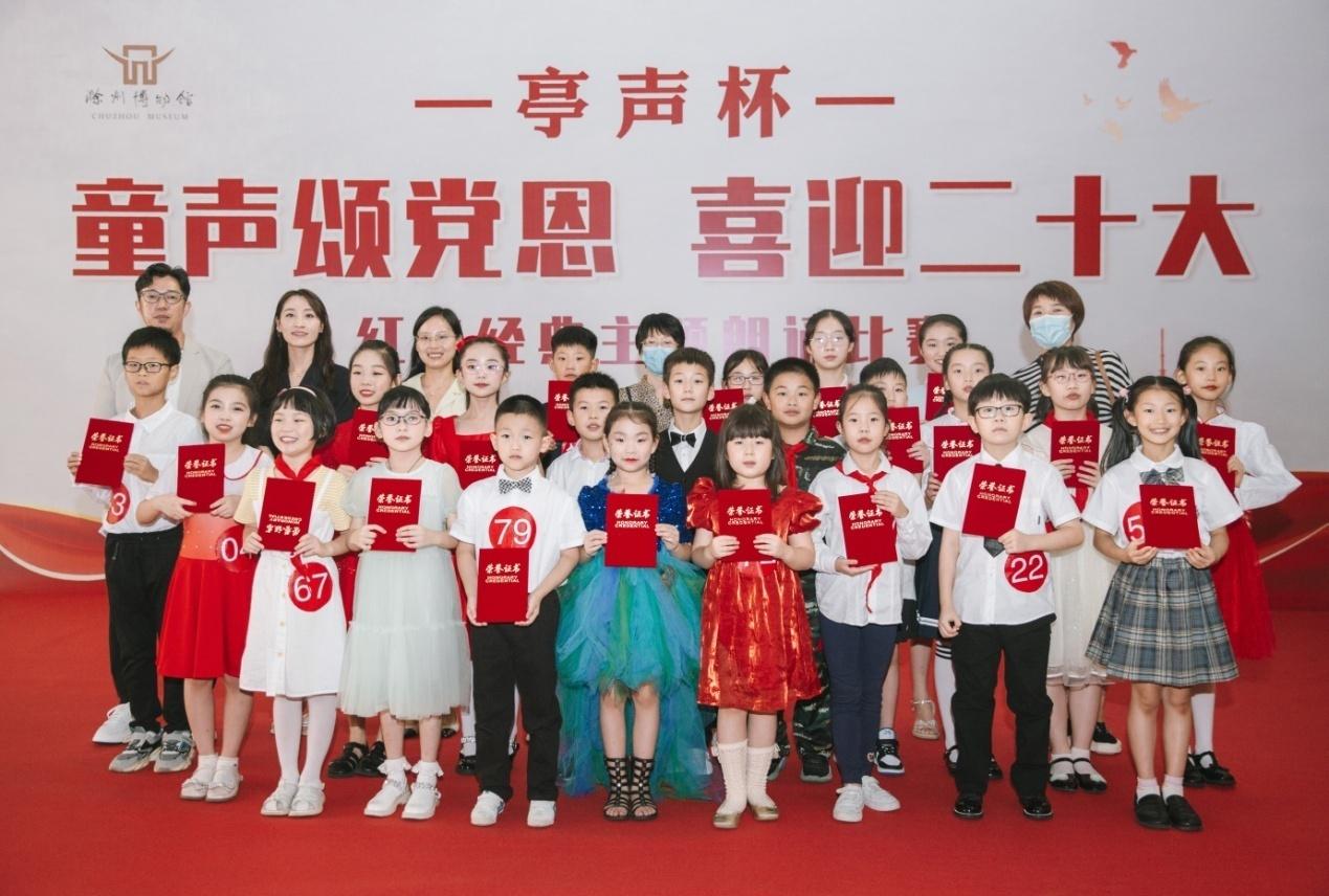 为了迎接党的二十大胜利召开、回顾党的光辉历史,弘扬中华民族优良传统文化,营造青少年学党史、感党恩、跟党走的浓厚氛围,滁州市文旅局关工委、滁州市博物馆联合“亭之声口才中心”于2022年8月27日下午开展“童声颂党恩喜迎二十大”红色经典主题朗诵比赛。