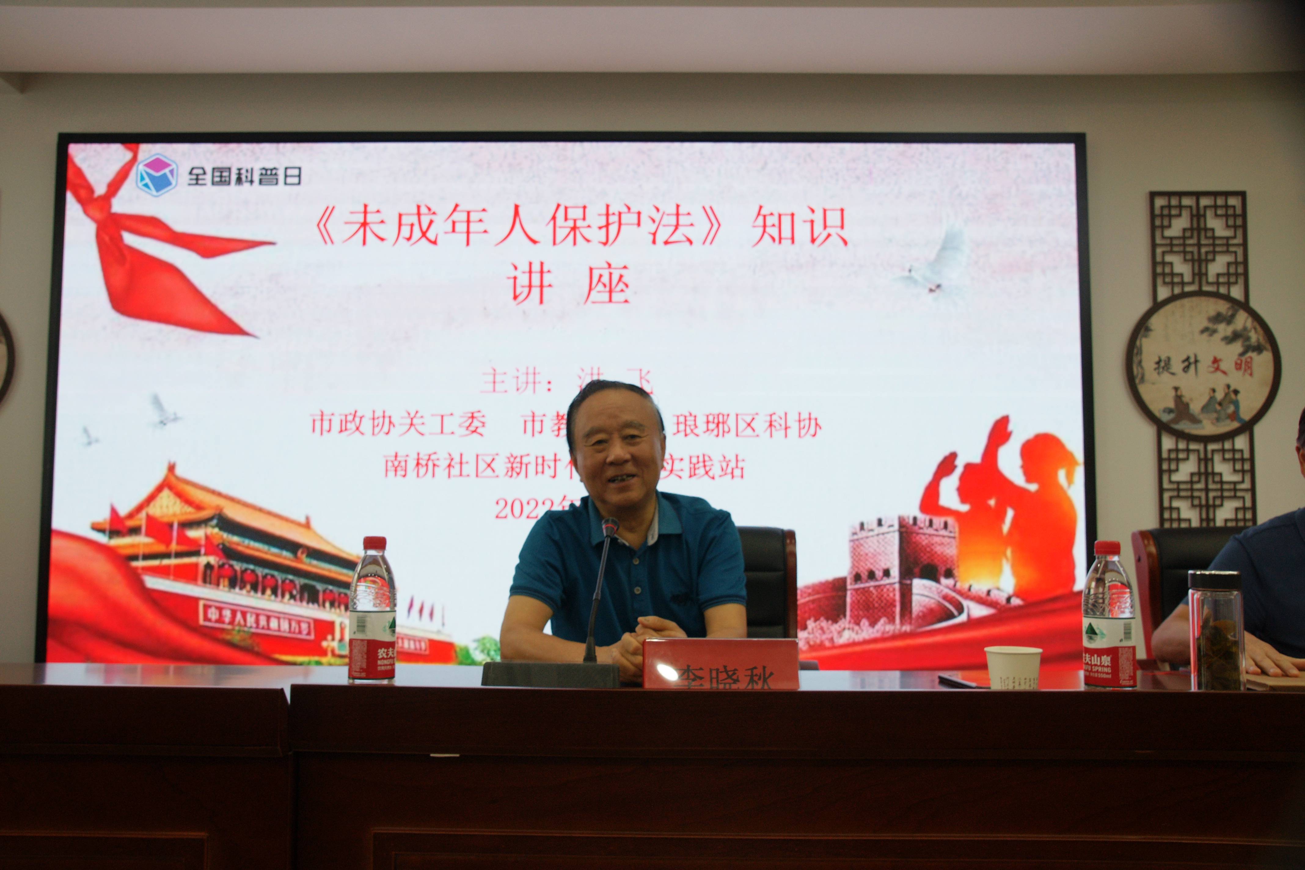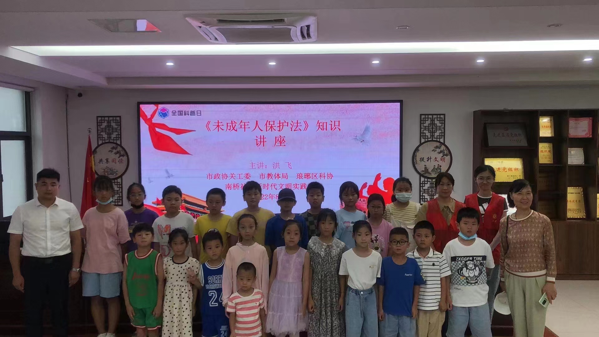 8月23日上午,市政协关工委和琅琊区丰山街道南桥社区联合开展中小学生《未成年人保护法》知识讲座。滁州市政协委员、安徽会峰律师事务所副主任洪飞律师,为南桥社区孩子们上了一堂生动的普法知识课。