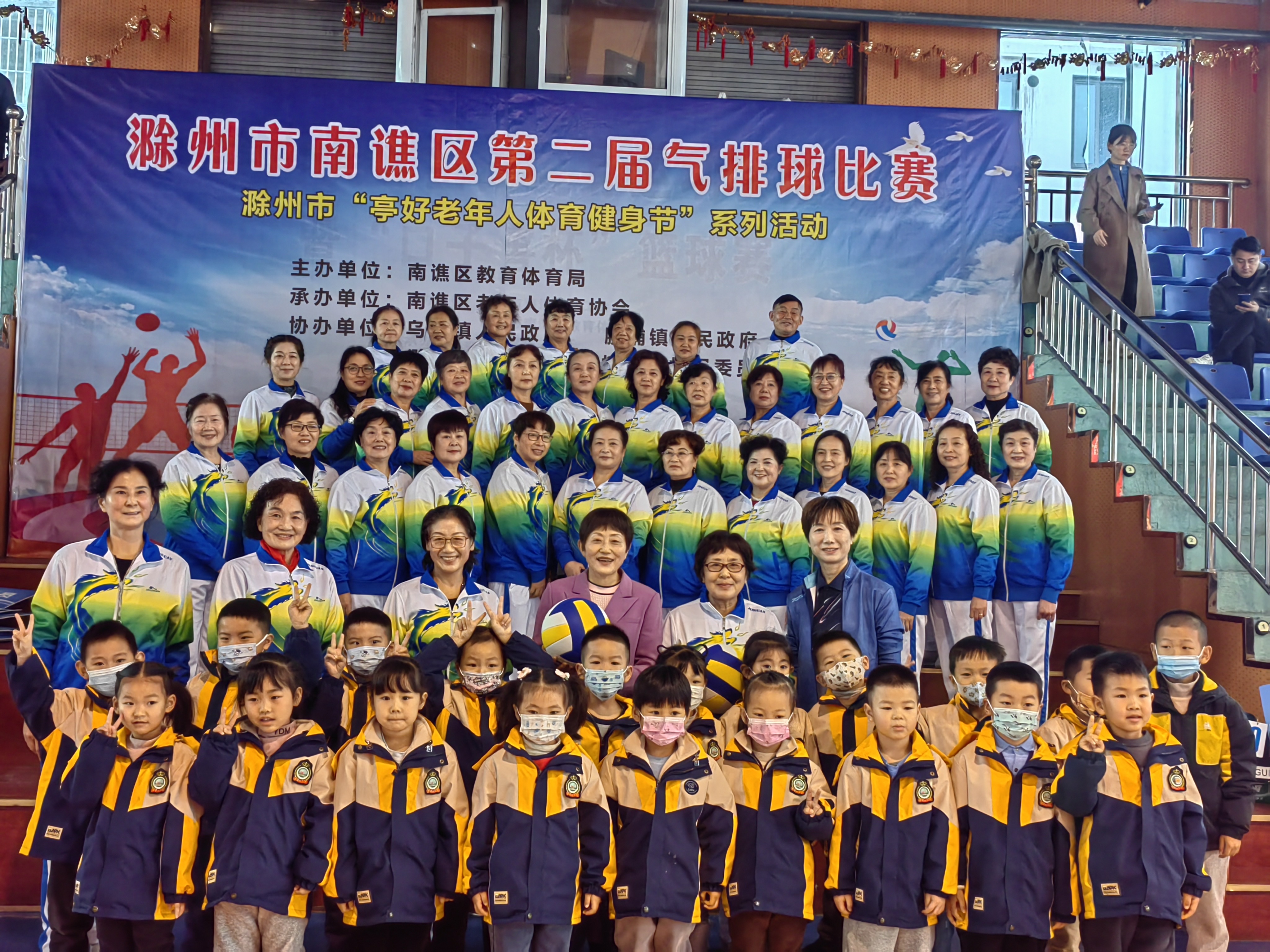 11月26日,在南谯区黄泥岗镇关工委邀请下,彩运网常务副主任朱云霞、副主任朱荣,带领市人社局关工委副主任平枫,党史地方志研究室关工委副主任赵文,科技局关工委副主任武明玉,以及滁州职业技术学院关工委副主任穆玲一行,应邀来到姑塘-鑫飞越篮球训练基地,参加滁州市南谯区第二届气排球比赛开幕式,并与镇幼儿园的学生一起进行排球传递活动,鼓励孩子们从小热爱运动,锻炼身体,增强体质。少年强,则国强,关心下一代工作从孩子抓起,永远在前行。