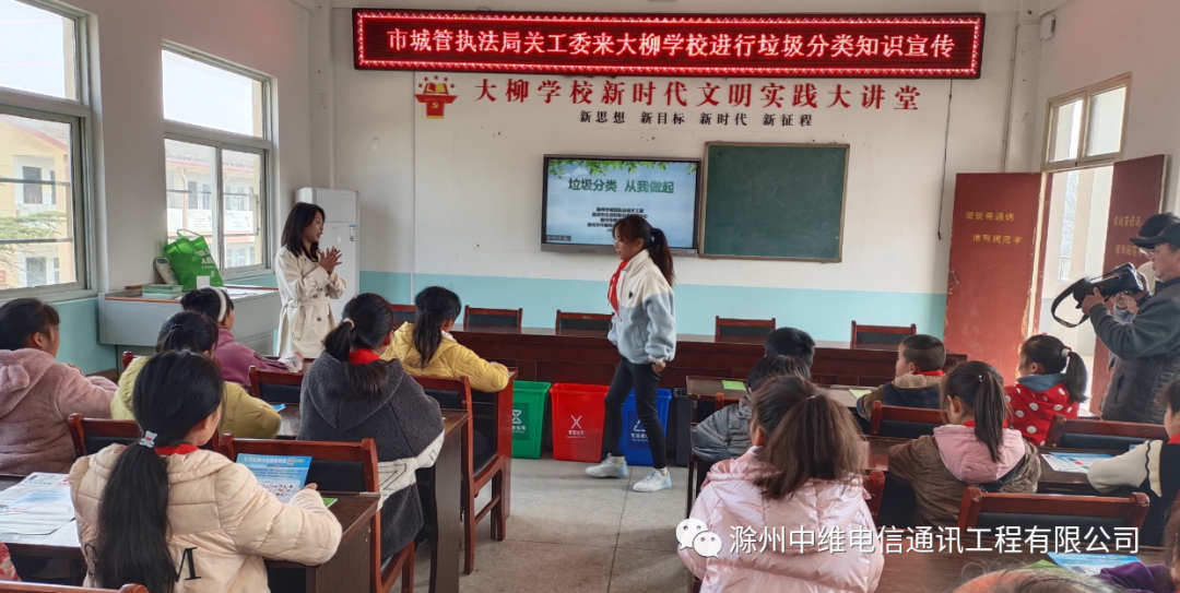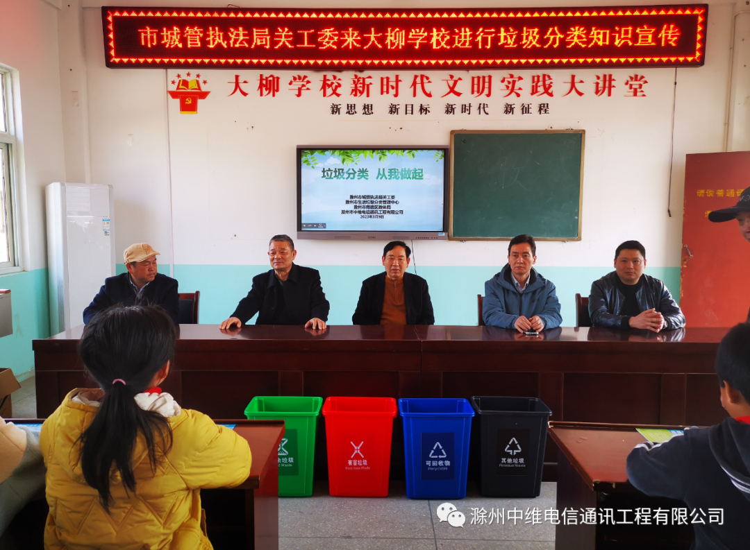 校园是生活垃圾分类宣传教育的重要阵地,承担着垃圾分类“从娃娃抓起”的关键职能。3月9日上午,滁州市城管执法局关工委、滁州市南谯区教体局,滁州中维电信通讯工程有限公司走进滁州市南谯区大柳学校,将垃圾分类教育搬进校园课堂,与师生开展了一堂别开生面的垃圾分类宣讲课。