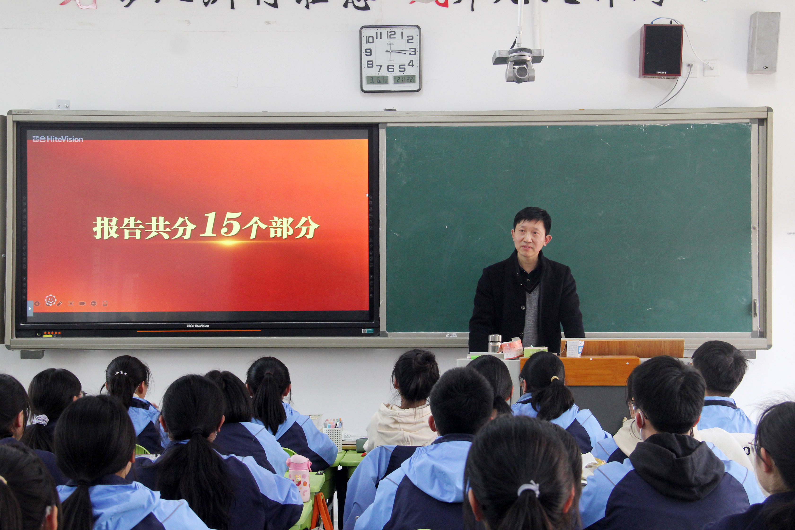 在高一(11)班,古鹏老师以《新时代 新征程 新作为》为题,围绕“新时代新征程中国共产党的使命任务”这一主题,对党的二十大精神作了详细阐述和深入解读。