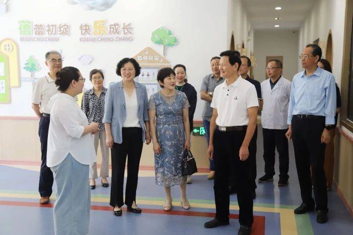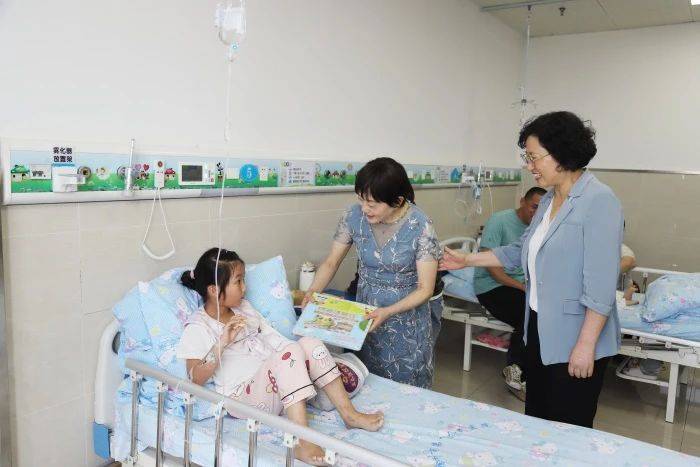 李耀才一行先来到第一人民医院托育中心,参观了婴幼儿活动室、功能房、户外活动场地等,与第三方负责人交谈了解托育中心运行情况,看望慰问保育员和孩子们;随后前往小儿保健科、儿科三病区,看望病床上的患儿,送上精美图书并表示亲切的慰问和节日的祝福。同时向医护人员了解住院患儿情况,叮嘱医护人员要为患儿提供精心的治疗和温馨的服务。这份六一儿童节前到来的惊喜感动了小患儿和在场陪护的家长们,他们露出开心的笑容并连连表示感谢,病房里充满了欢声笑语和节日气氛。