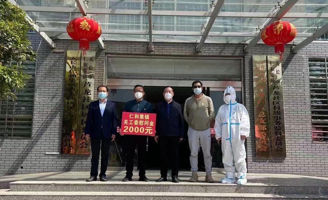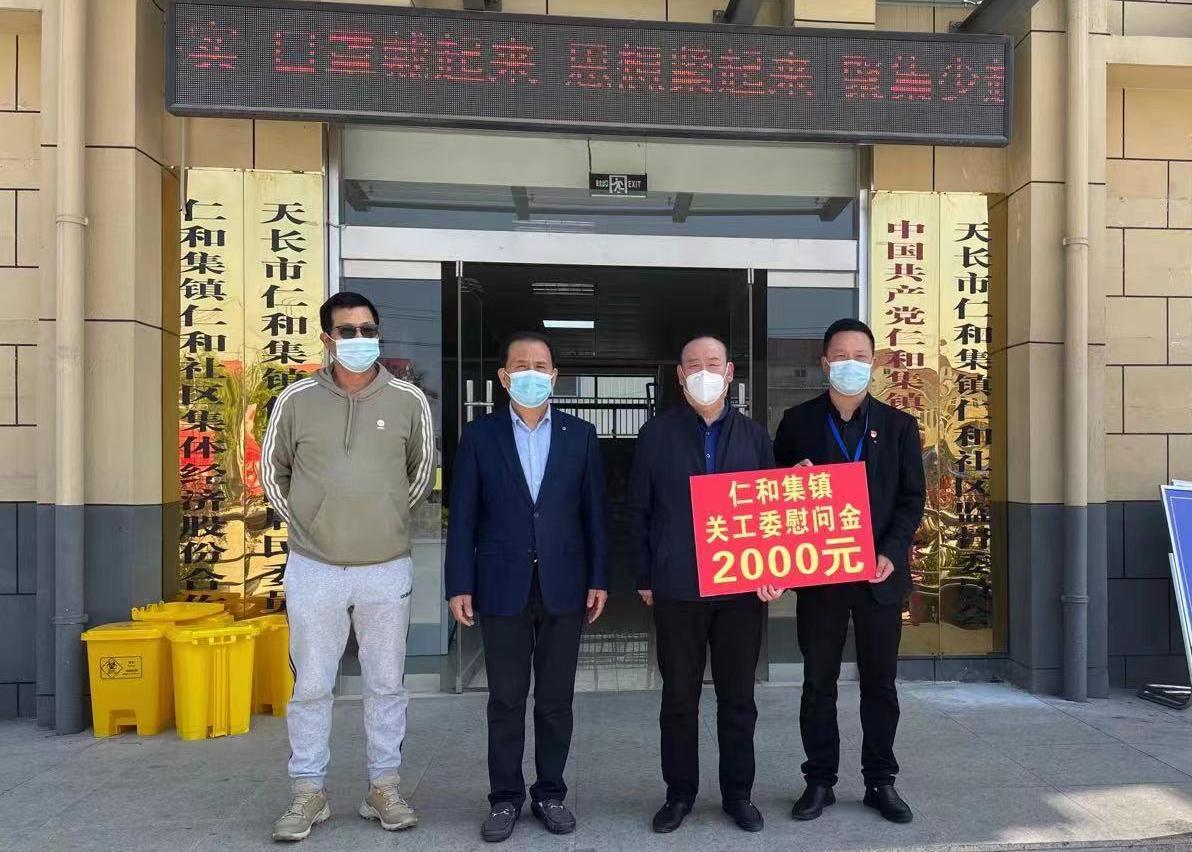 在天长市疫情防控进入管控的特殊时期,该市仁和集镇关工委广大“五老”志愿者及社区工作者不畏风险,不辞辛苦,不怕困难,共同奋斗在抗疫一线,宣传防疫知识,在社区门岗值守。他们舍小家为大家的举动牵动着镇关工委和镇民营企业关爱联谊会班子成员的心,随即组织捐款捐物,4月17日,在镇关工委主任崇斯文和镇关工委副主任、镇民营企业关爱联谊会会长何维国的带领下,专程前往芦龙社区、仁和社区、界牌社区的疫情防控点开展关爱慰问抗疫一线志愿者活动,向坚守在疫情防控一线执勤的志愿者们表示慰问与敬意,并送上了6000元慰问金和24000元的290套防护服、60箱口罩及相关防疫物资,用行动表达了对疫情防控工作的无私支持。