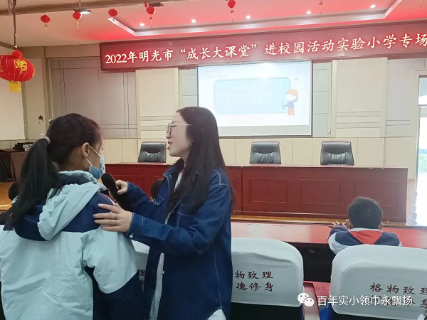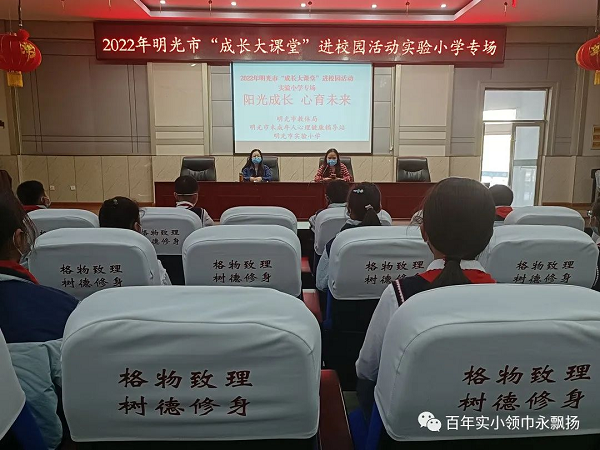 为全面落实教育部给全国中小学校新学期加强心理健康教育的指导建议(十条),更好促进中小学生身心健康和谐成长,帮助学生了解心理健康知识,掌握必要的心理调适方法,形成正确的心理健康观念,引导学生以积极的态度面对生活,增强耐挫能力,4月15日下午,明光彩运网、明光市教育体育局及教体局关工委和未成年人心理健康辅导站共同开展“成长大课堂”走进校园活动。