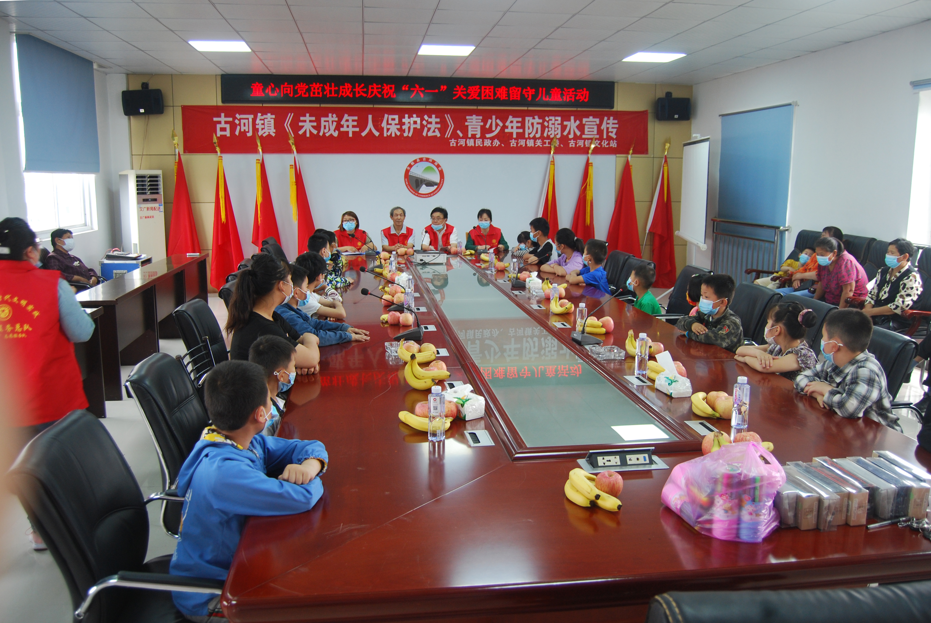 五月28日,在“六一"儿童节即将来临之际,古河镇关工委与镇民政办共同举办“童心向党茁壮成长"六一关心关爱困境留守儿童活动,镇关工委给小朋友宣传了《未成年人保护法》和防溺水有关知识,还给每位同学发放了书包、台灯文具和礼品。参加活动的24名留守儿童和家长们欢聚一堂其乐融融。