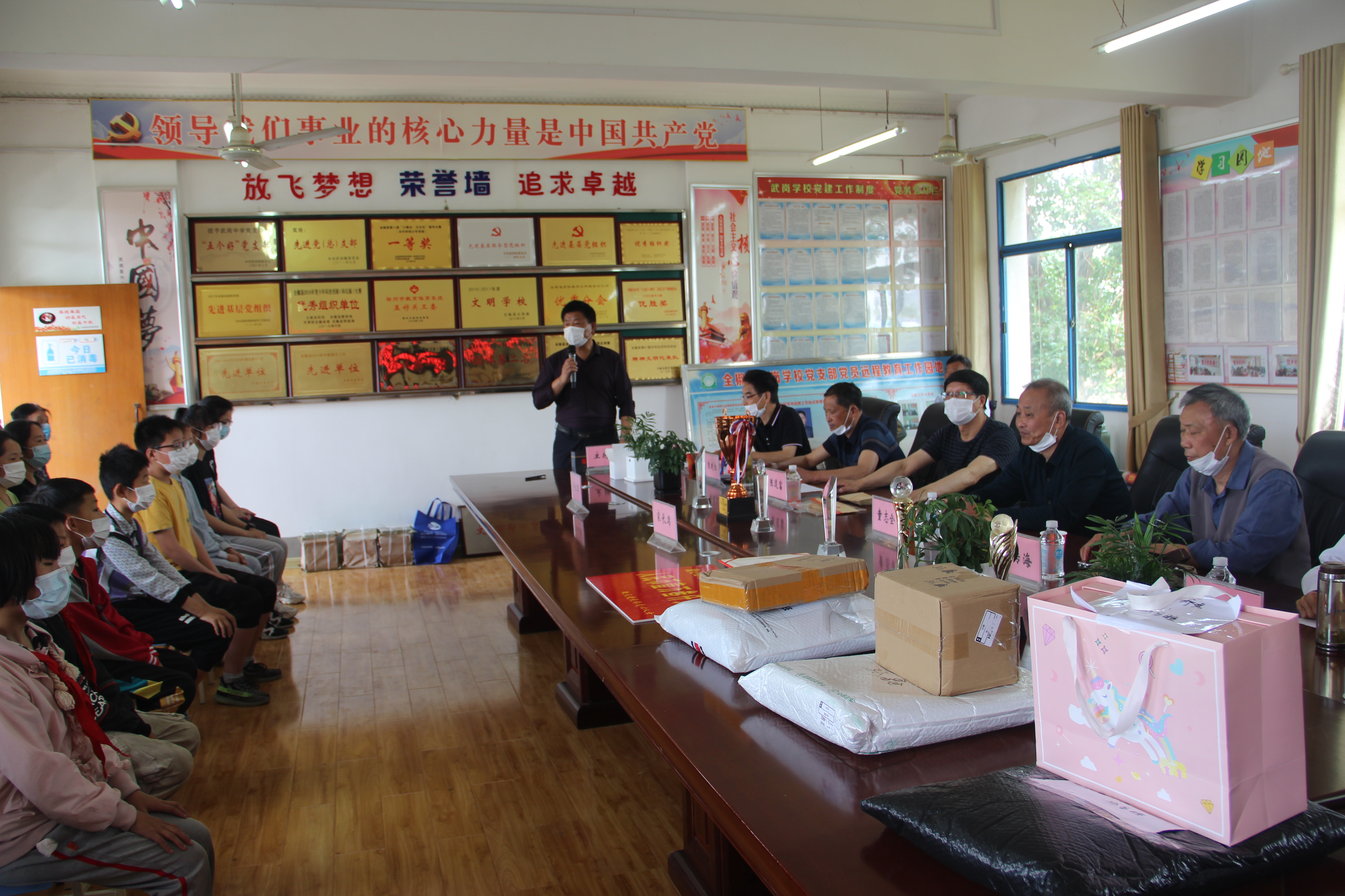 汤玉华校长从武岗学校的办学历史、办学理念、办学特色、办学方向等方面向各位嘉宾作了介绍,并对所有受捐赠的学生提出了殷切希望:今天学会感谢,明天懂得感恩!刻苦学习,以优异的成绩报答社会,感恩曾经帮助过自己成长的人。