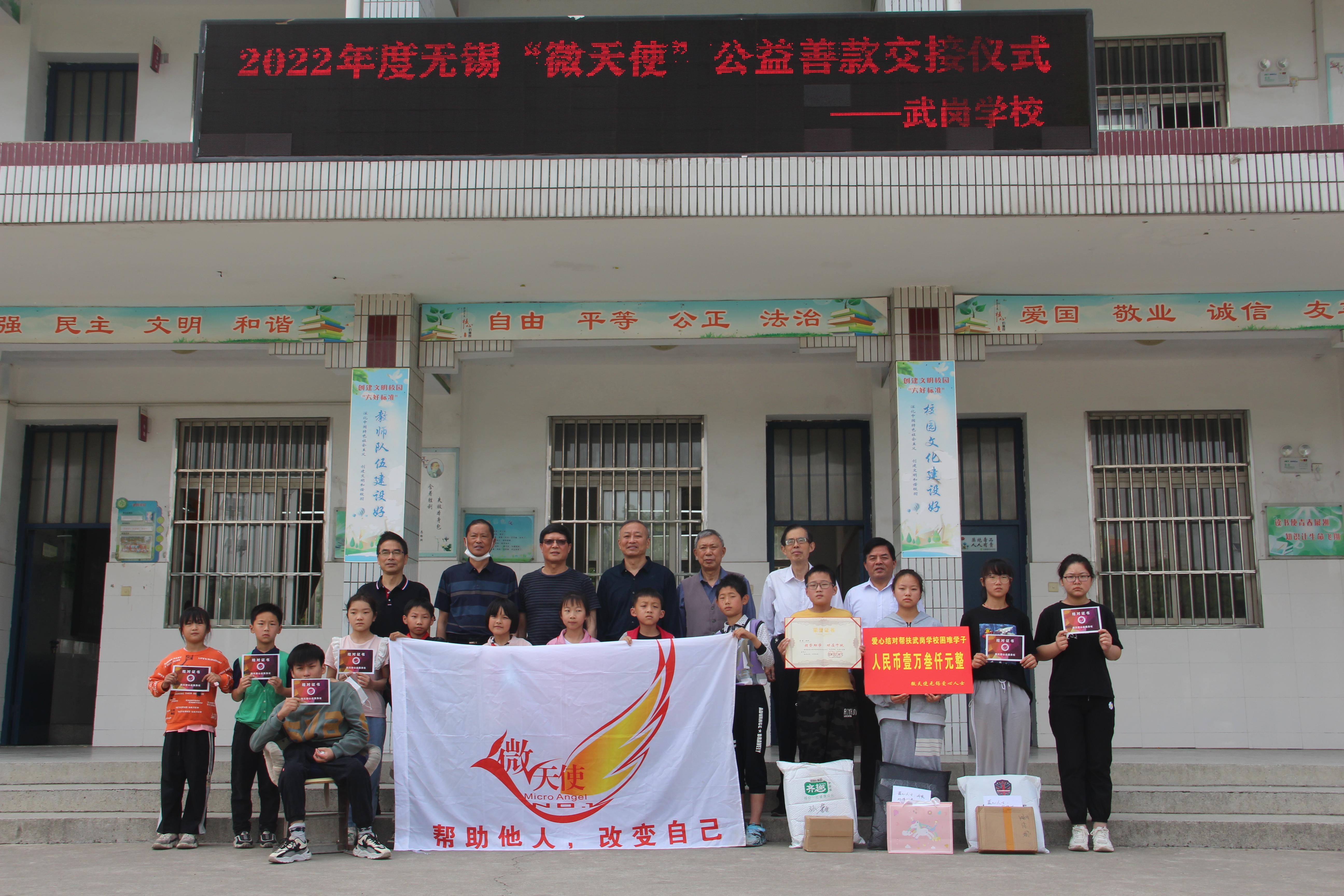 初夏的阳光,舒适而温暖!2022年5月27日上午9时,无锡“微天使”全椒公益善款交接仪式在武岗学校党员活动室举行。