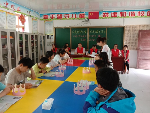 6月一日下午,定远县炉桥中学关工委、校团委在留守儿童活动室,为十一名留守儿童举办集体过节活动。
