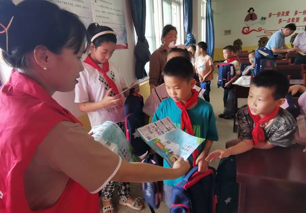 活动现场青年志愿者向留守儿童发放“预防溺水 珍爱生命”宣传手册,讲解了溺水事故原因,预防溺水的措施、溺水时的自救方法和现场抢救溺水者的方法等知识。