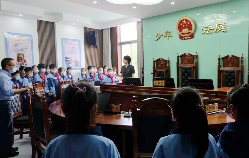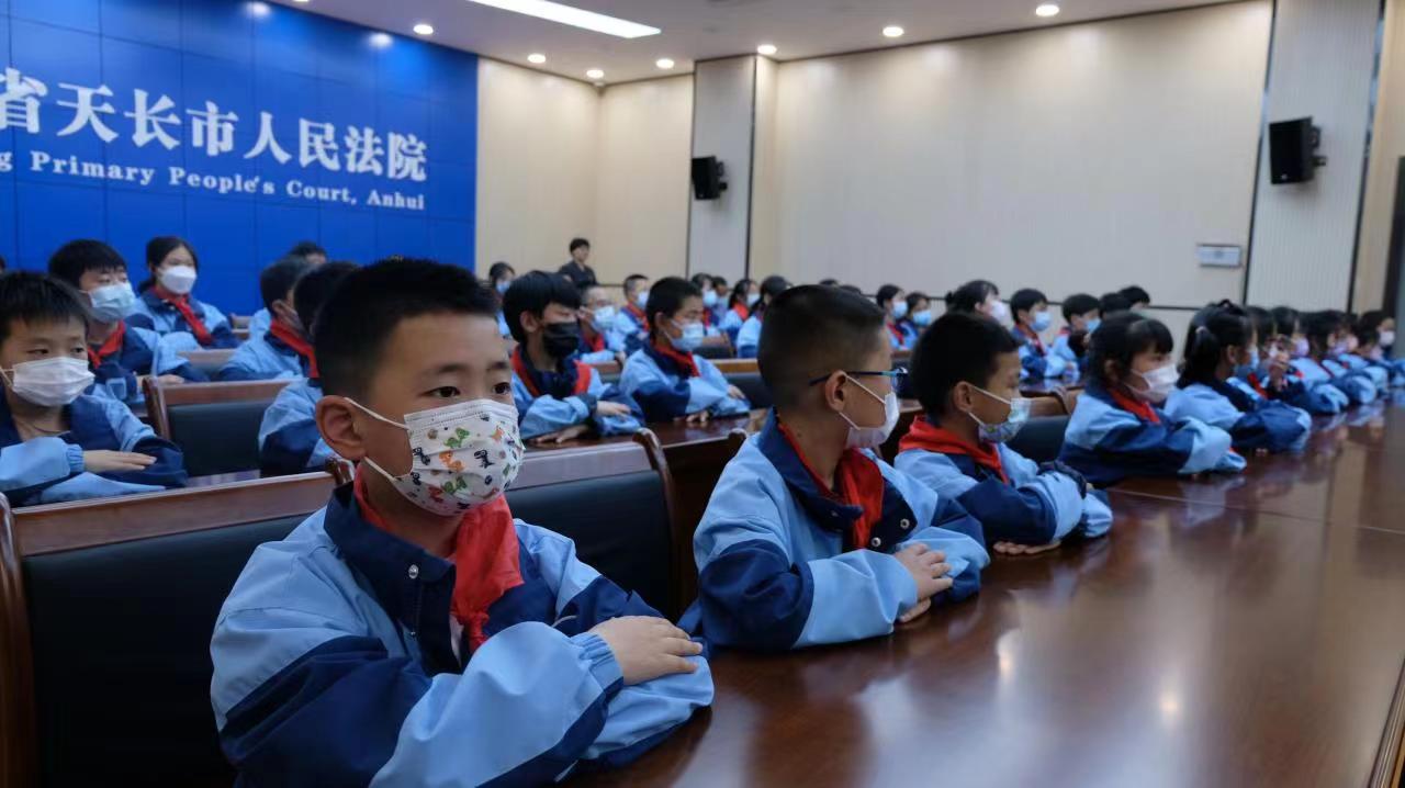 5月27日,天长法院少年法庭和院关工委联合举行未成年人开放日活动,邀请张铺小学40名学生代表走进法庭,零距离感受司法神圣和庄严。