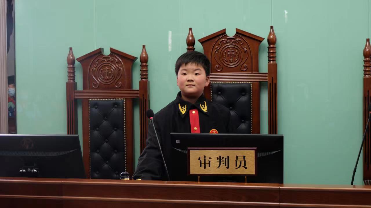 下午两点半,在法官助理朱海清的带领下,同学们首先来到该院红色励志园,集体朗诵入党誓词,认真聆听全国模范党员代表们的先进事迹。在刑事审判庭,同学们详细了解法庭布局,亲身体验法庭的庄严肃穆,并在少年法庭,穿上了法袍,敲响了法槌,也当了一回“小法官”。最后,朱海清讲述法治微故事,以案释法,为大家送上一场别开生面的法治教育课。