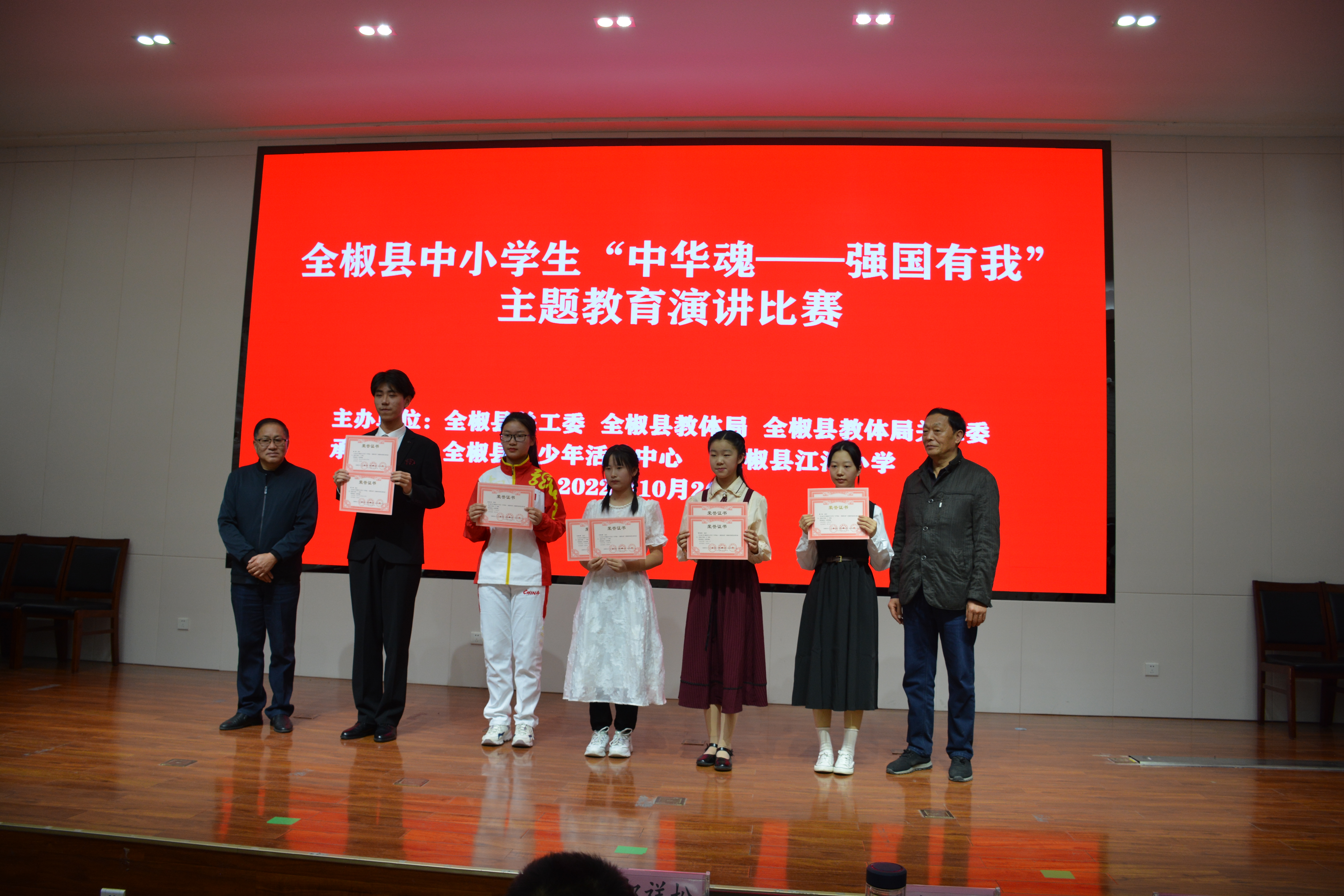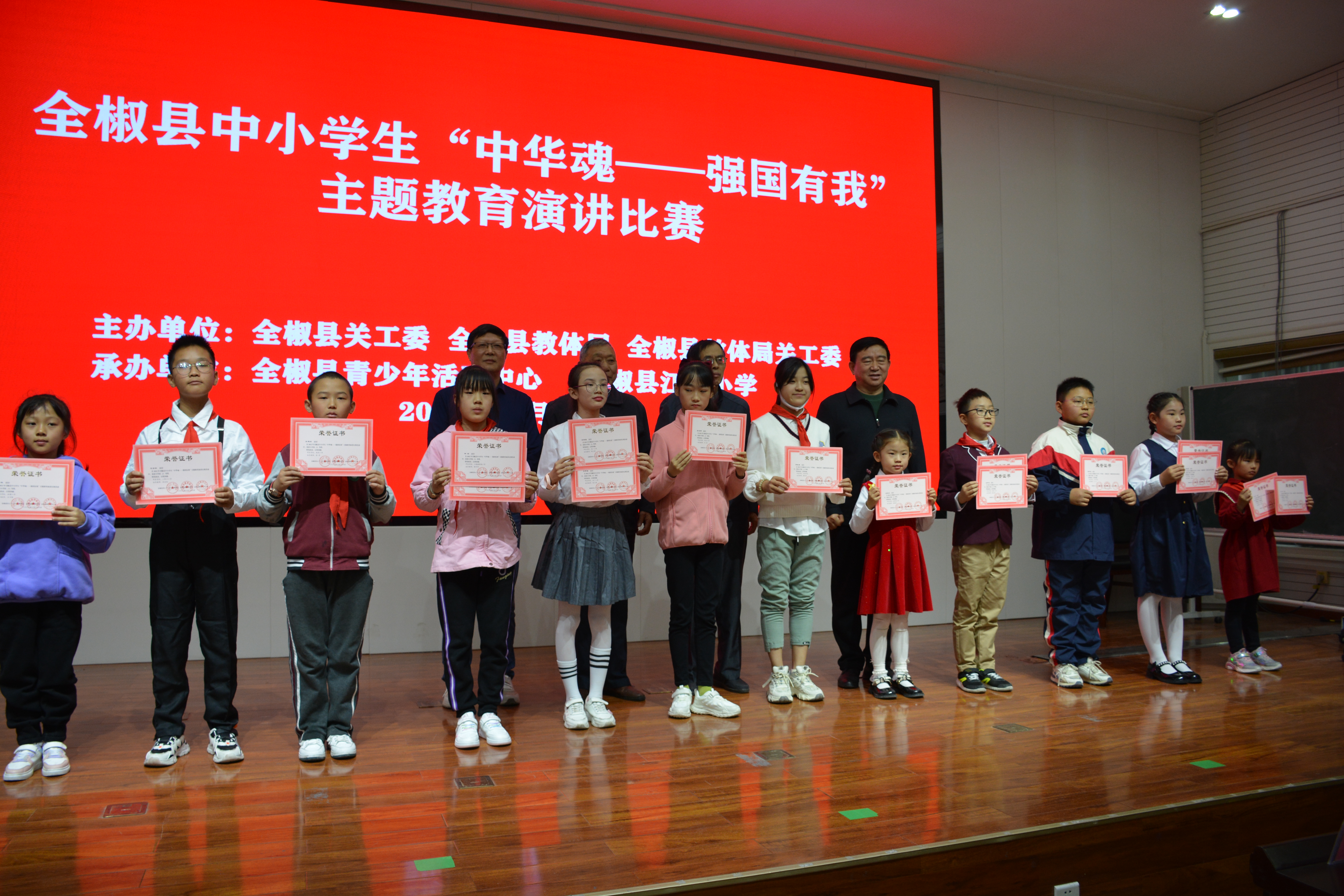 10月25日,全椒县关工委、全椒县县教体局和县教体局关工委在江海小学举办中小学生“中华魂——伟大的党”主题教育演讲比赛,全县有22个小学组和11个中学组参加演讲比赛。县关工委主任杨勇、常务主任王万贵、副主任鲁传海、教体局副局长范大松、教体局关工委主任谢扬名等领导出席演讲比赛。