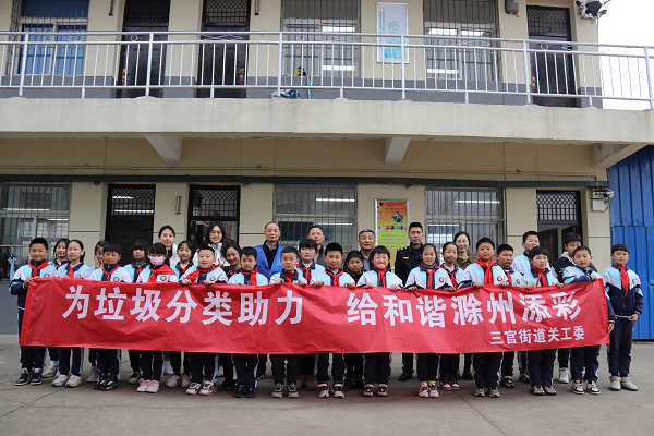 3月17日,琅琊区三官街道关工委联合三官城管执法中队、街道社工站在三官中心小学举办争当“使用公筷 反对浪费 垃圾分类”小达人活动,现场向同学们发放倡议书,并详细讲解垃圾分类相关知识。