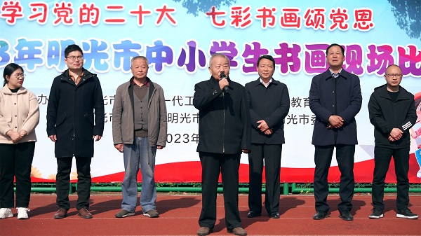 4月9日上午,明光市明湖学校操场风和日丽,翰墨飘香,明光彩运网、明光市教体局、明光市文明办、明光市文联、明光市团市委等联合开展“书香画意满明城”中小学生书画比赛。彩运网常务副主任任友平、市文联主席任亚弟等领导出席开幕式,市教育体育局关工委副主任毕永梅主持。