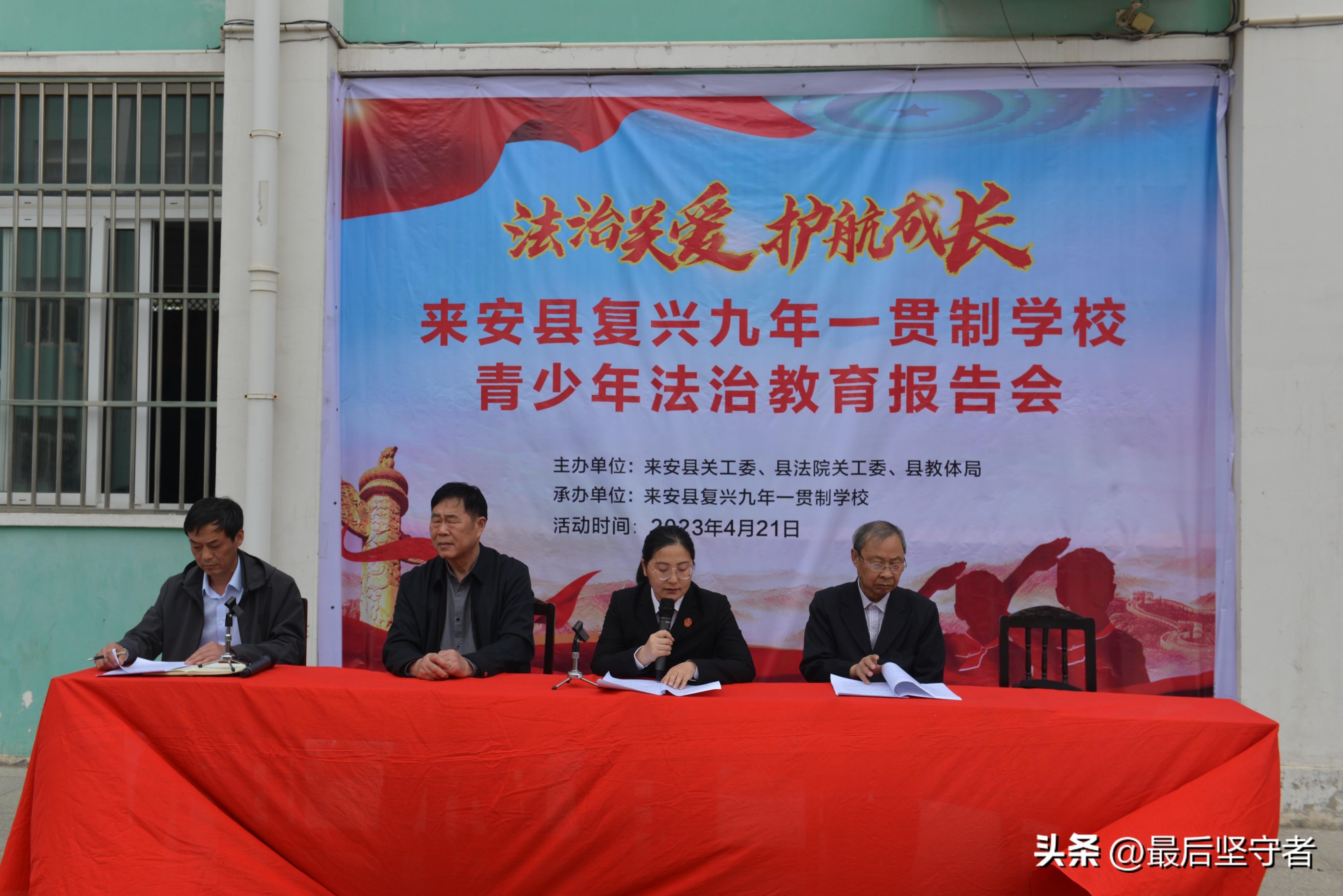 本次活动,是由来安县关工委、县法律关工委、县教体局主办,来安县复兴九年一贯制学校承办。活动体现社会关注教育,助力教书育人工作。真正实现“法治关爱,助航成长”。(供稿:余祖仁 施歌 审核:计国亚、陶文虎 陈宝国)