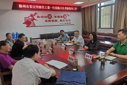 7月7日,滁州市委宣传部关工委主任陈健伟带队来天长市,调研天长宣传部门网吧管理及关心下一代工作开展情况。天长市委常委、宣传部部长朱慧琳陪同。