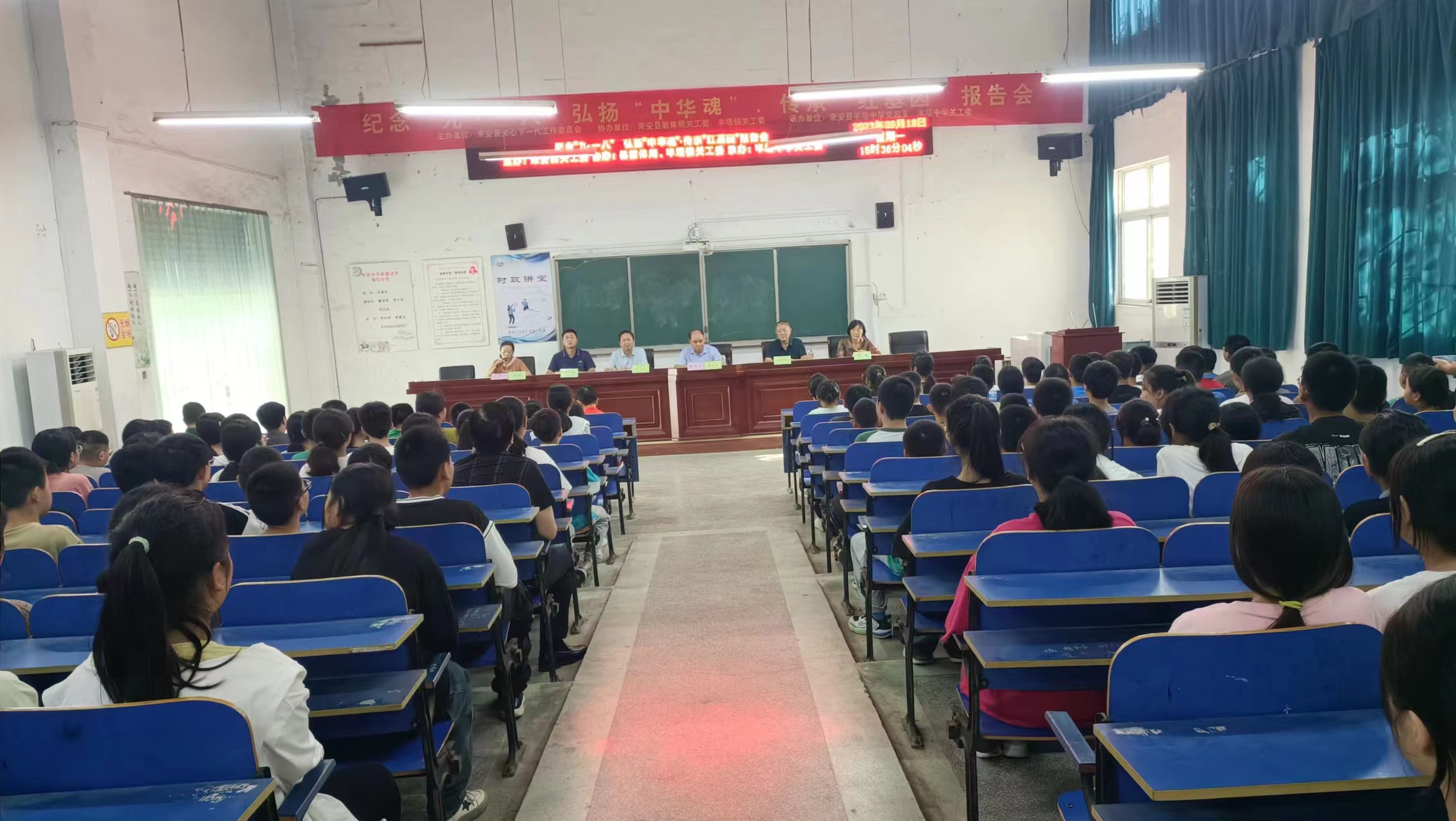 “九一八”事件爆发92周年之际,2023年9月18日下午,来安县关工委、县教体局关工委、半塔镇关工委在半塔中学共同举办“勿忘九一八、弘扬中华魂、传承红基因”主题教育报告会。