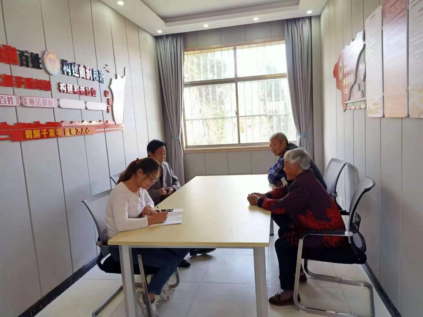 2020年3月,曲涧村“两委”在村部一楼专门开辟一间办公室,挂牌为“老张调解室”,调解员由开始老张一人,现在发展到18人,采用“法治、德治、自治”和“亲情治”的方式,借鉴“枫桥经验”,做到“小事不出村,大事不出镇,矛盾不上缴”。三年多来,共排查矛盾隐患32起,预防矛盾纠纷31件,调解办结民间纠纷30件,协助镇村处理纠纷12件,调解成功率达98%,接地气的“老张调解室”赢得了群众的信赖。独山镇党委大力推广“老张调解室”的好做法,坚持以党建引领,制定了“独山镇调解员等级评定办法”、“调解员管理办法”、“解调员工作制度”,对调解员进行法律法规培训,在白露村设立“杜以先调解室”,青龙村设立“老薛工作室”,已连续三年获得全县“无访乡镇”荣誉称号。老张也自豪地说“老骥助力创平安,不尽全力心不甘,邻里和睦乡风好,构建和谐责任担”。
