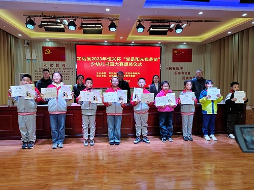 11月23日上午,定远县关工委、县教体局联合举办的2023年恒兴杯“党是阳光我是苗”少幼儿书画大赛颁奖仪式在实验小学教育集团曲阳路校区举行。县关工委、县教体局关工委负责同志、部分获奖学校、获奖学生和教师代表参加颁奖仪式。
