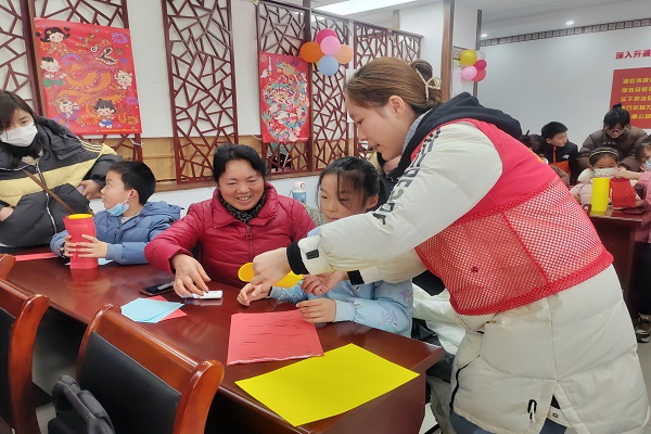 为了让孩子对祖国悠久历史文化有更深地了解,迎接2024年春节的到来,营造社区浓浓的节日气氛,增进孩子与家长之间的亲密情感,培养未成年人的动手、动脑能力,体验亲子制作的快乐的乐趣!2024年2月6日下午,南桥社区新时代文明实践站、南桥社区关工委联合阅滁州·遵阳书苑开展"喜迎春节做花灯,和谐社区庆佳节"——2024年“我们的节日·春节”主题活动。