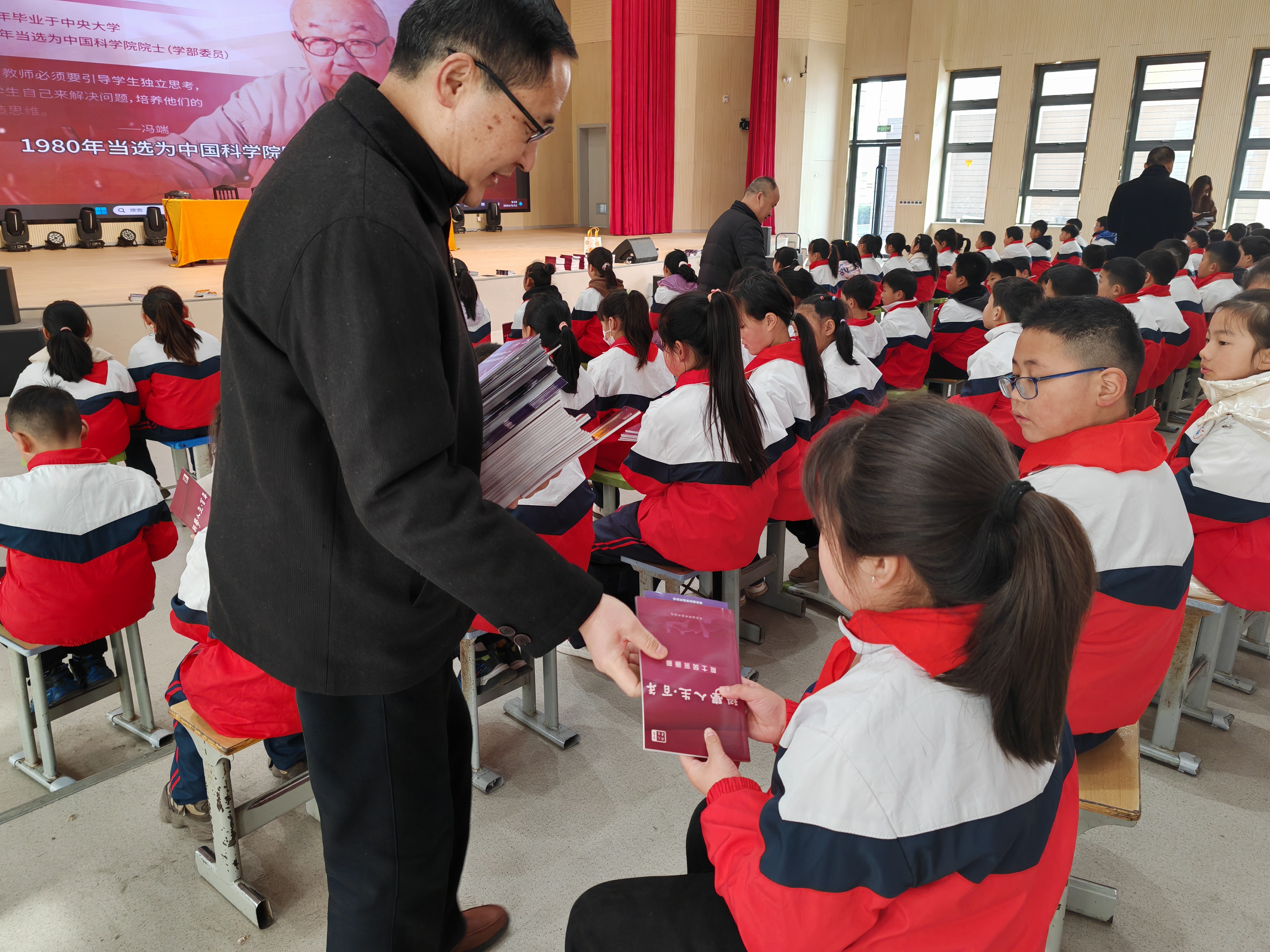活动现场为同学们分发了精美的科学家精神宣传画册,近300名师生观看了视频《科学人生·百年院士风采展》。活动让全校师生进一步走近科学家院士,了他们,并从他们的人生中获得智慧和启迪,全方位营造来安本地弘扬科学家精神的社会氛围。活动最后,和同学们开展了科学家精神的交流互动活动,孩子们踊跃举手,大声地说出了自己的远大理想和报效国家的宏大志向,把现场气氛推向高潮。