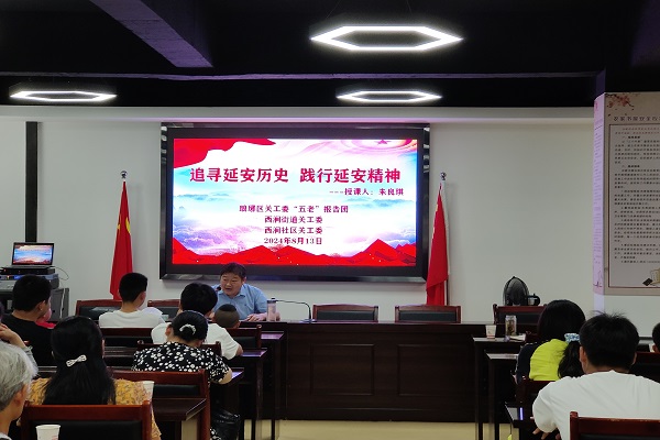 8月13日,琅琊区关工委、西涧街道关工委联合在西涧社区开展“四教并举▪托起明天的太阳”品牌宣讲活动,区关工委“五老”报告团朱良琪同志作《追寻延安历史,践行延安精神》主题宣讲。
