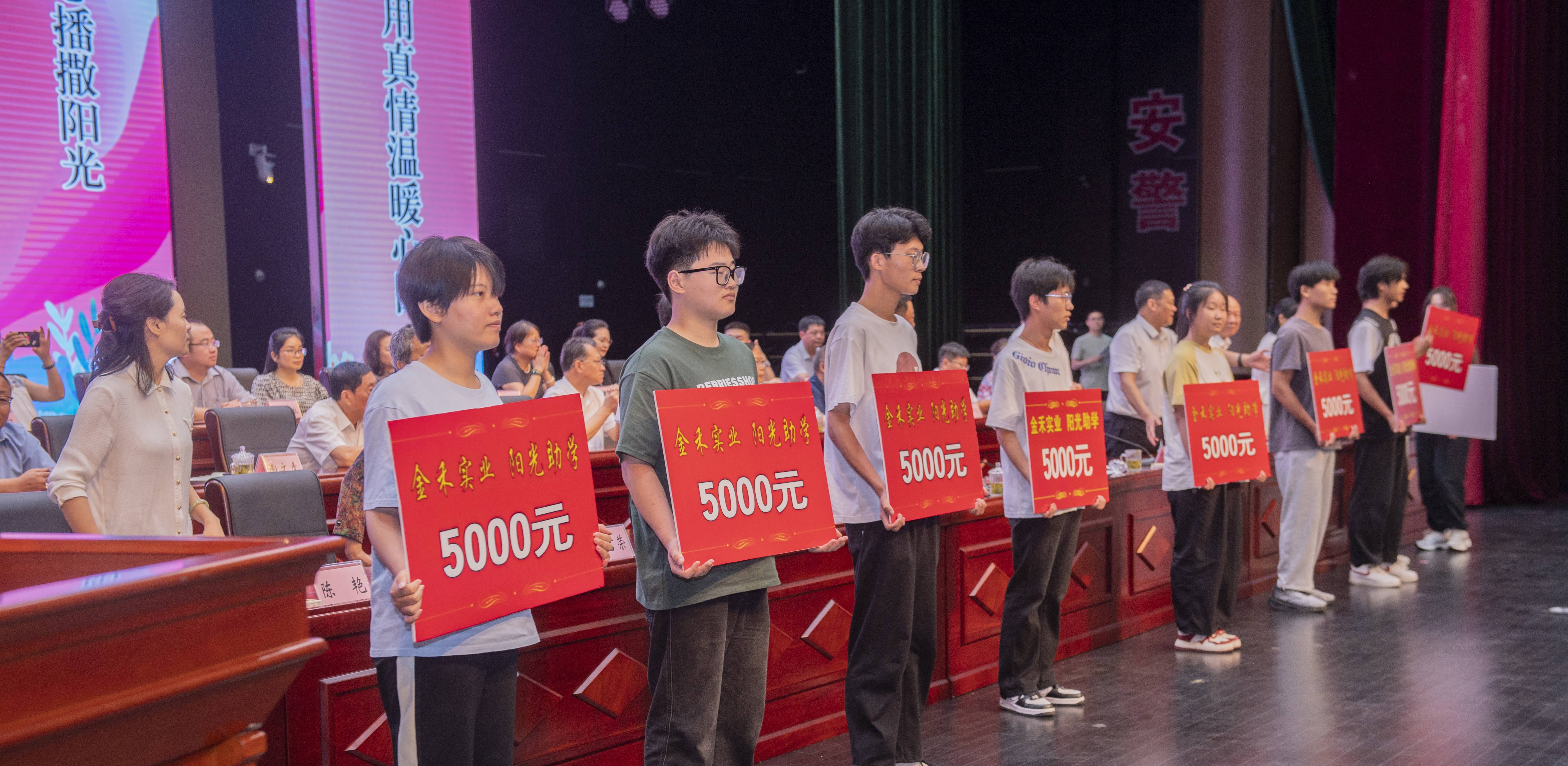 今天,来安县关工将对家庭经济困难的414名中小学学生、130名大学一年级新生、105名大学二至四年级学生,共计649人,发放爱心助学金190万元。金禾实业对公司职工子女考上大学的奖励3000元,考上研究生的奖励5000元、考上博士生奖励8000元。今年又资助30名大学新生,30名高一新生。近三年金禾实业共投入爱心助学资金200万元。