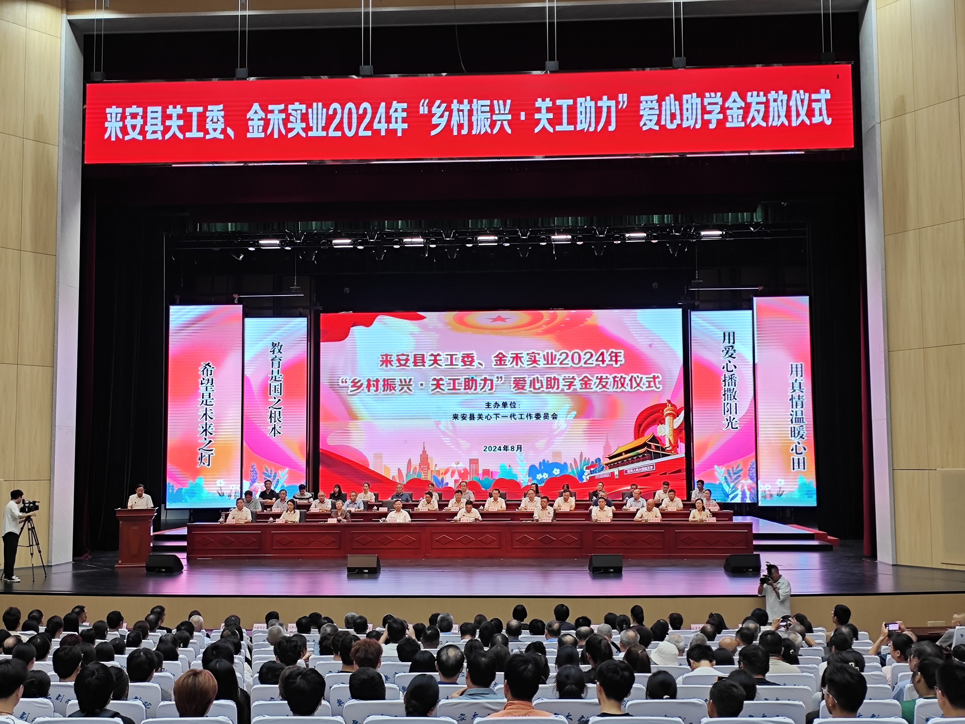 2024年8月21日上午,来安县关工委、金禾实业2024年“乡村振兴·关工助力”爱心助学金发放仪式,在来安县文化中心大剧场会场举行。县委书记杨军出席活动并讲话。副书记、县长舒宏俊主持活动。县人大常委会主任吕功洋、县政协主席董文增、关工委主任陈言荣,县领导夏永生、陈艳、王燕、程永旺、沈庆春、刘月凤及全县各级关工委主任、捐资助学爱心企业家代表、受助学生代表600余人参加发放仪式。