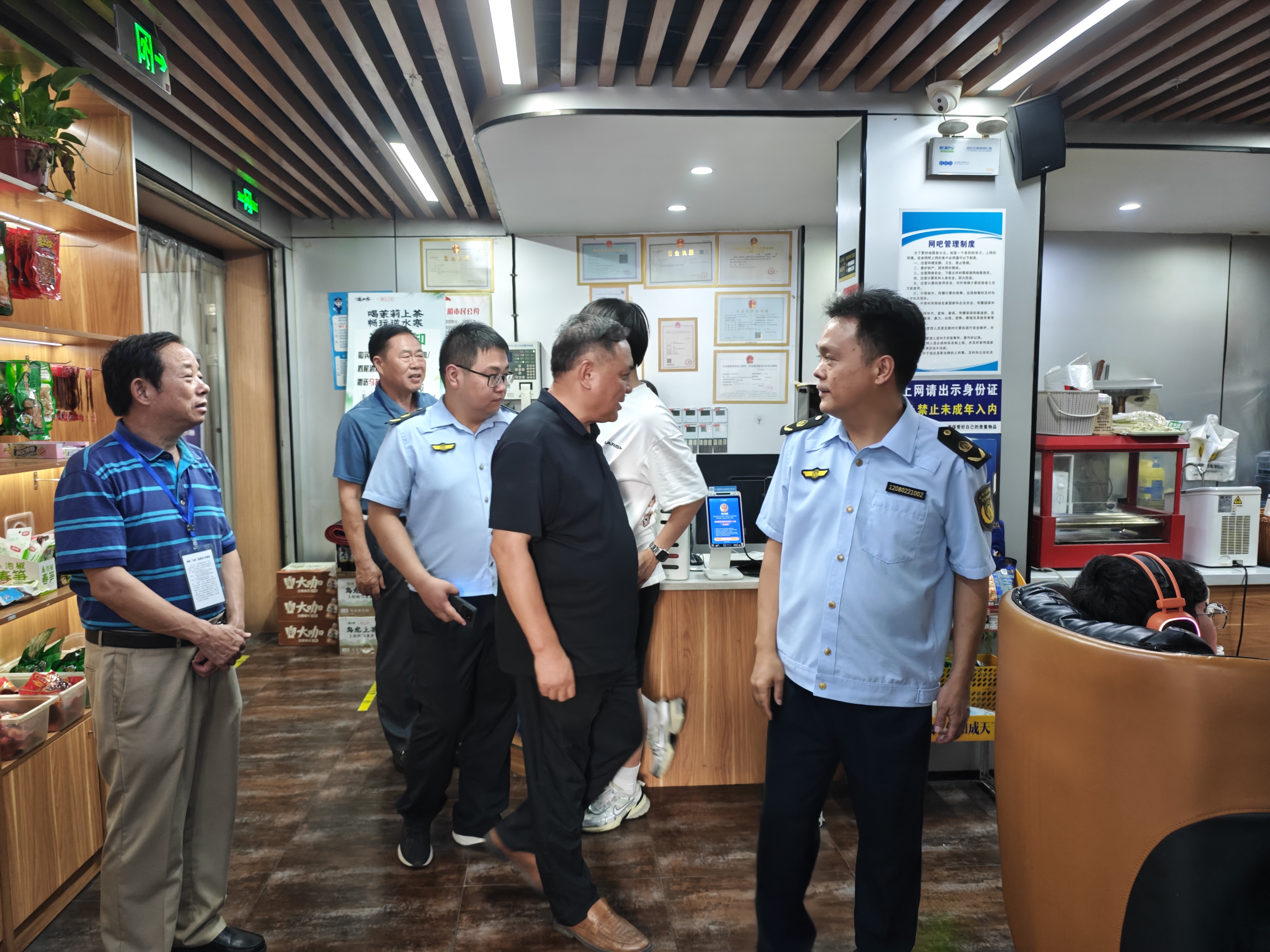 检查过程中,文化执法队员和“五老”网吧义务监督员重点检查了网吧入口处是否张贴“未成年人禁止入内”警示标志;《营业执照》和《网络文化经营许可证》是否悬挂并亮证经营;是否有违规接纳未成年人上网现象、上网人员实名登记情况是否完善;是否按规定做好疫情防控工作、是否存在安全隐患等问题。“五老”义务监督员督促网吧经营者要自觉守法经营,坚决杜绝未成年人上网,切实为全县青少年健康成长创造良好的社会文化环境。